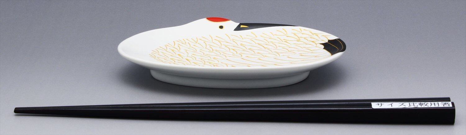 有田焼 幸楽窯 プレート 皿 「 鶴形 」 取皿 銘々皿 雪衣金羽根 直径約12cm おめでたいうつわ 迎春食器 日本製 96781 サイズ:約幅12×奥行き9.5×高さ1cm 素材:磁器 生産国:日本 有田焼は佐賀県有田町を中心に焼かれる陶磁器のこと。400年の歴史のある伝統的工芸品。 鶴の羽根を金彩で描いた上品な銘々皿。 お正月やお祝いの席にも最適。 商品個々によりサイズ、色柄等に若干の違いが発生することがある。