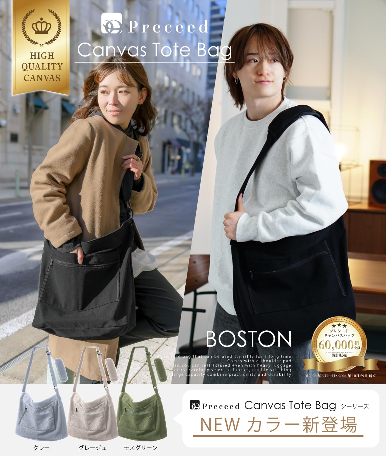 [Preceed] 新色登場」【肩が疲れない】 トートバッグ キャンバス ショルダーバッグ 脱着可能肩パッド 金属製バックル 良質ファスナー 内ポケット2口 大容量 男女兼用 ボストン型