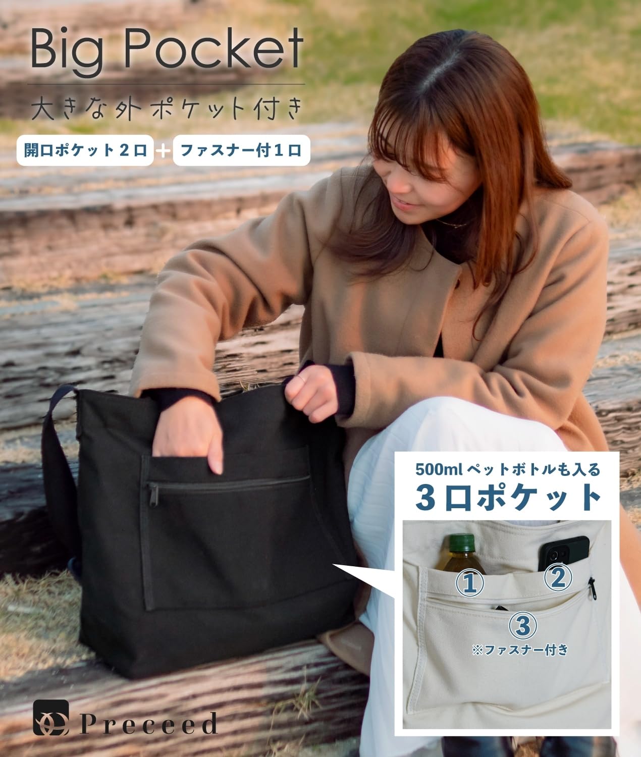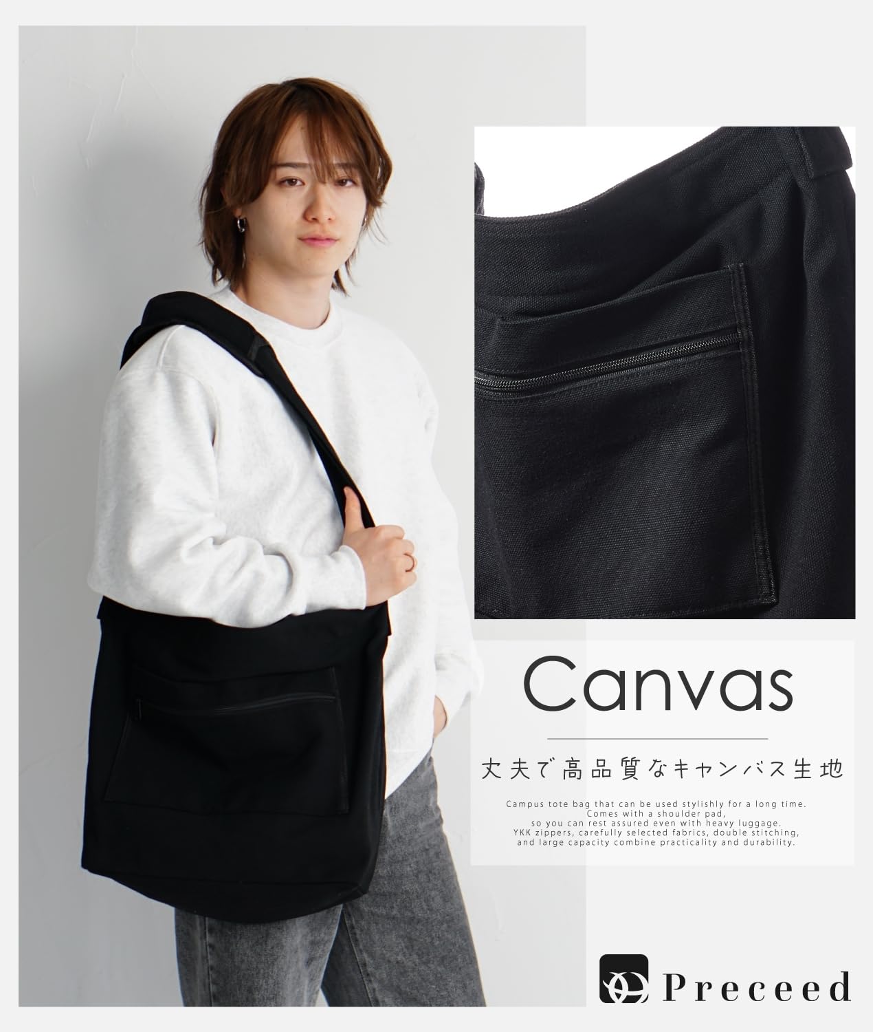 ? キャンバス 【徹底的にこだわった品質 】従来の品質を超える Preceed(プレシード)限定 キャンバス トートバッグ が登場。バッグが重くなっても安心「脱着可能ショルダーパッド」を付属。すぐ取りたい物を分けて収納できる「大容量内ポケット」に加え、厳選された「高品質キャンバス生地」と安心の高耐久高品質のファスナーを採用。学生カバン メッセンジャーバッグ エコバッグ 旅行バッグ ショルダーバッグ 、本製品1つでマルチに活躍します。