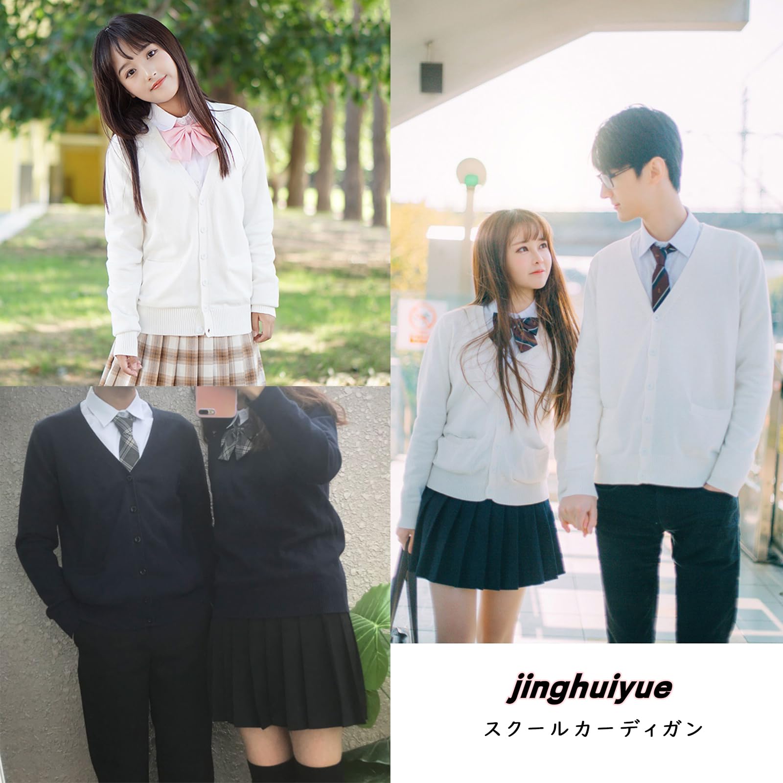 [jinghuiyue] スクールカーディガン 女子 制服 ゆったり ニット 無地 通学 高校生 厚手 学校用