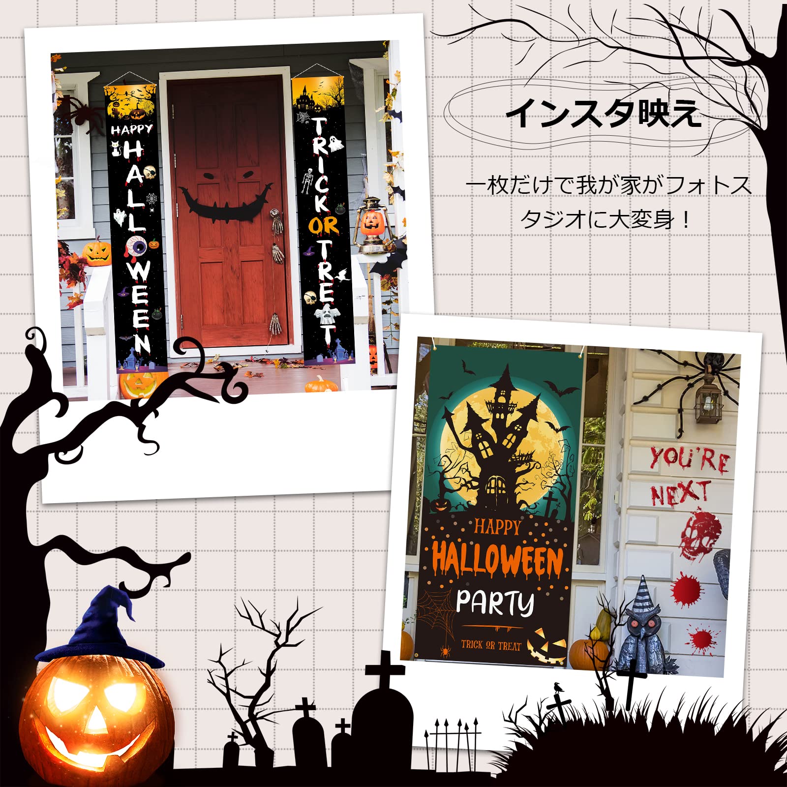 インスタ映えグッズ:壁に飾るだけでフォトジェニックなスポットを手軽におうちの中に作り出すことができます。今年は簡単なホームデコで、“映える写真”を撮って、おうちハロウィンを楽しんでみてはいかがでしょうか。