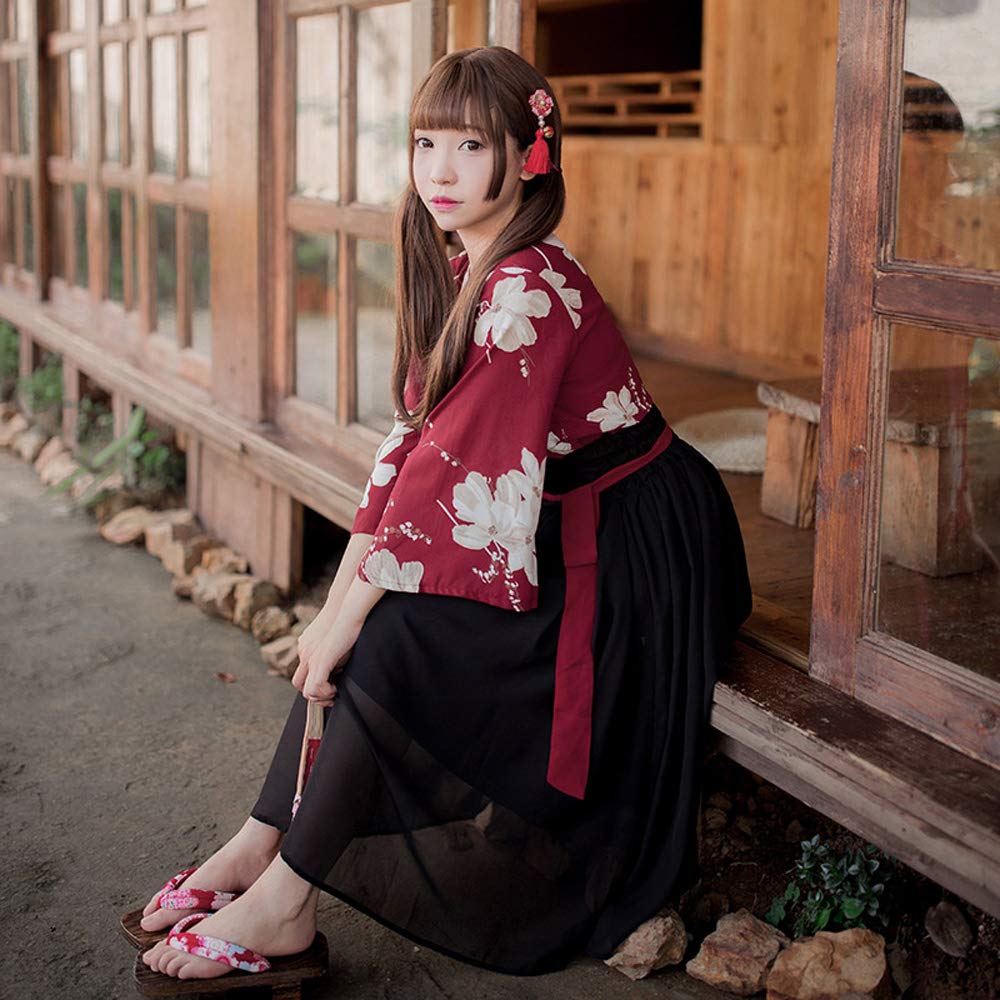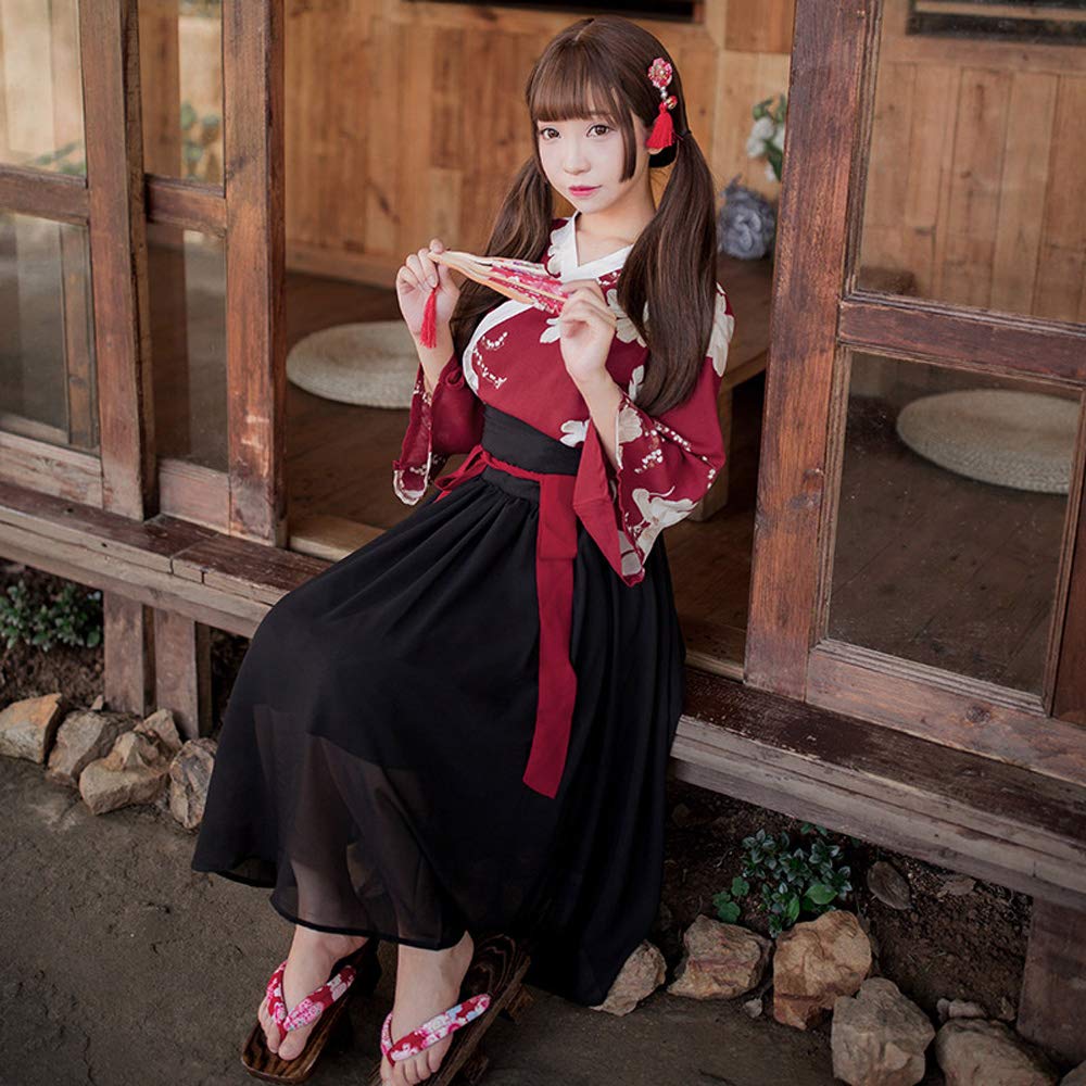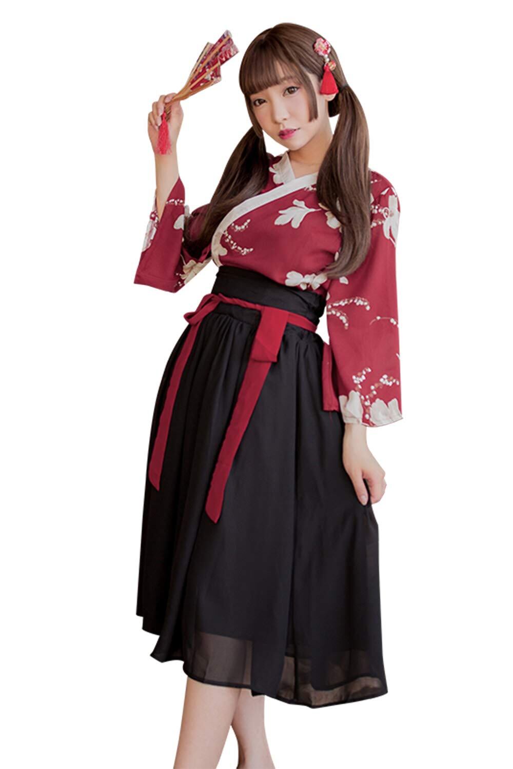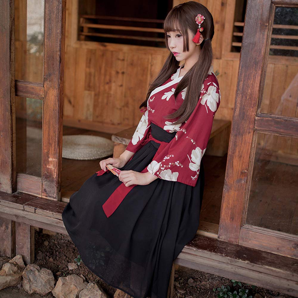 YAISHN 和服 漢服 浴衣 コスプレ 着服 花魁 スカート レトロ風 レディース 仮装 和風 古典美人服 写真 撮影 学園際 文化際 夏祭り 夏祭り ハロウィン フリーサイズ 4点セット