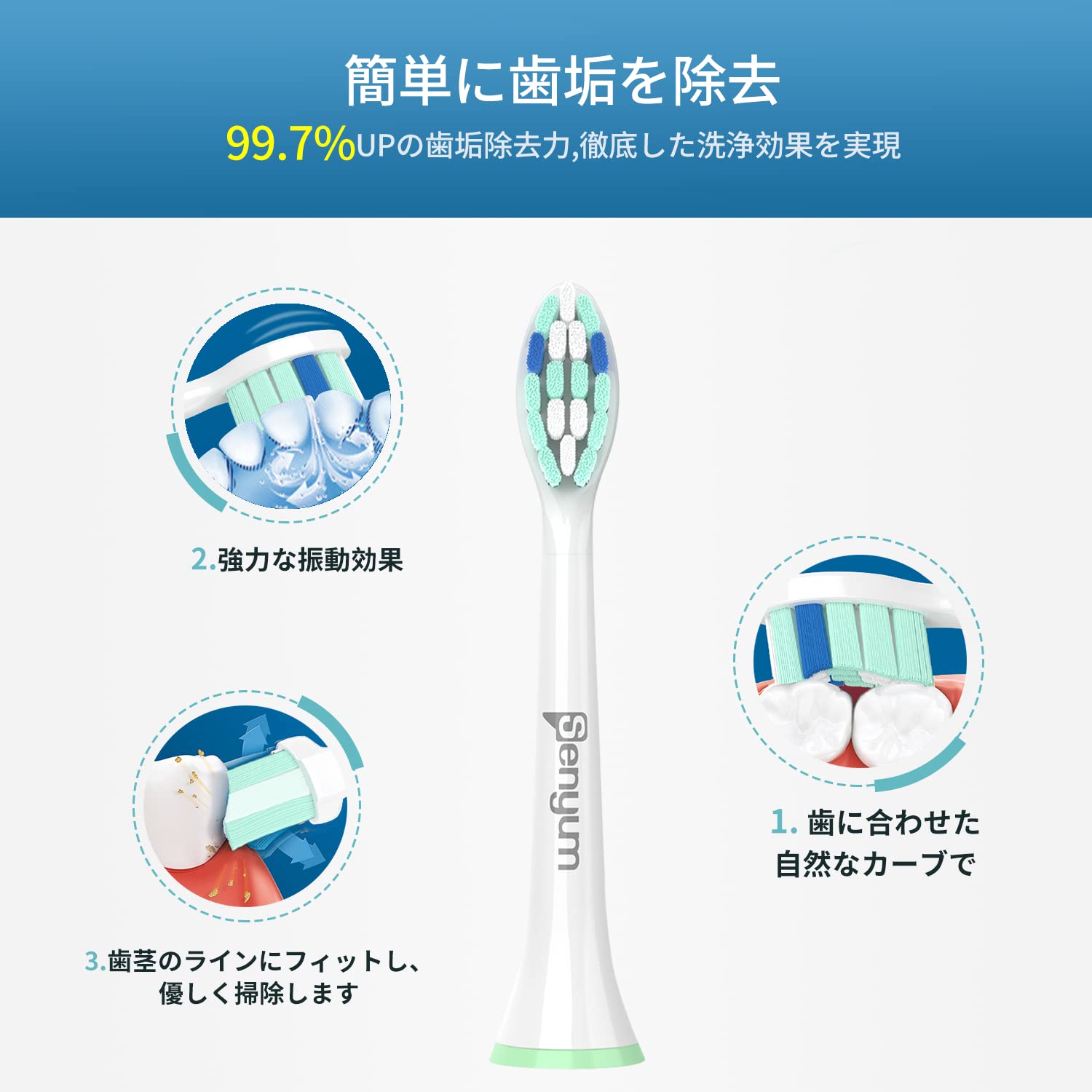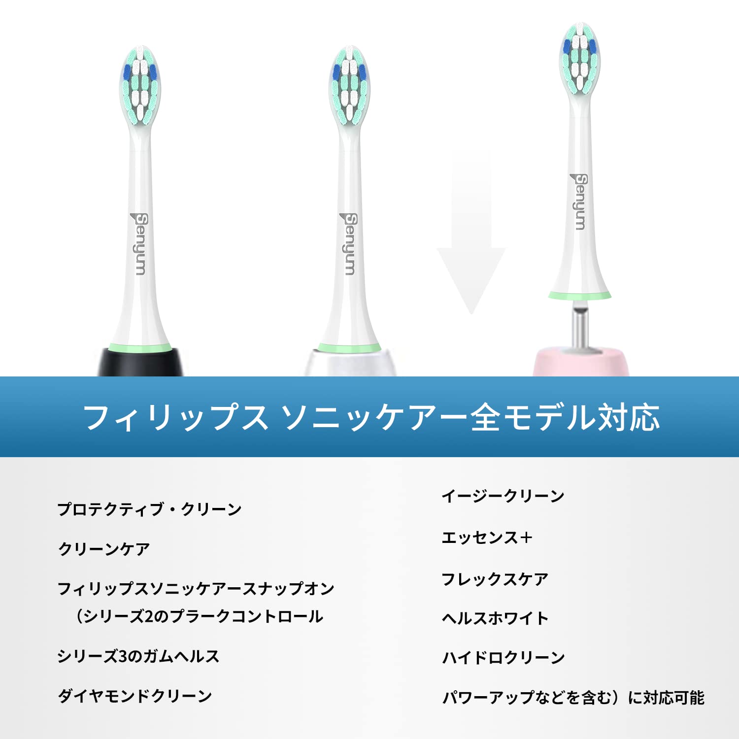 完璧な互換性:Senyumの歯ブラシ用替えブラシは、フィリップスソニッケアー電動歯ブラシのハンドルに完全に対応するように特別に設計されています。(スナップオンシステム)