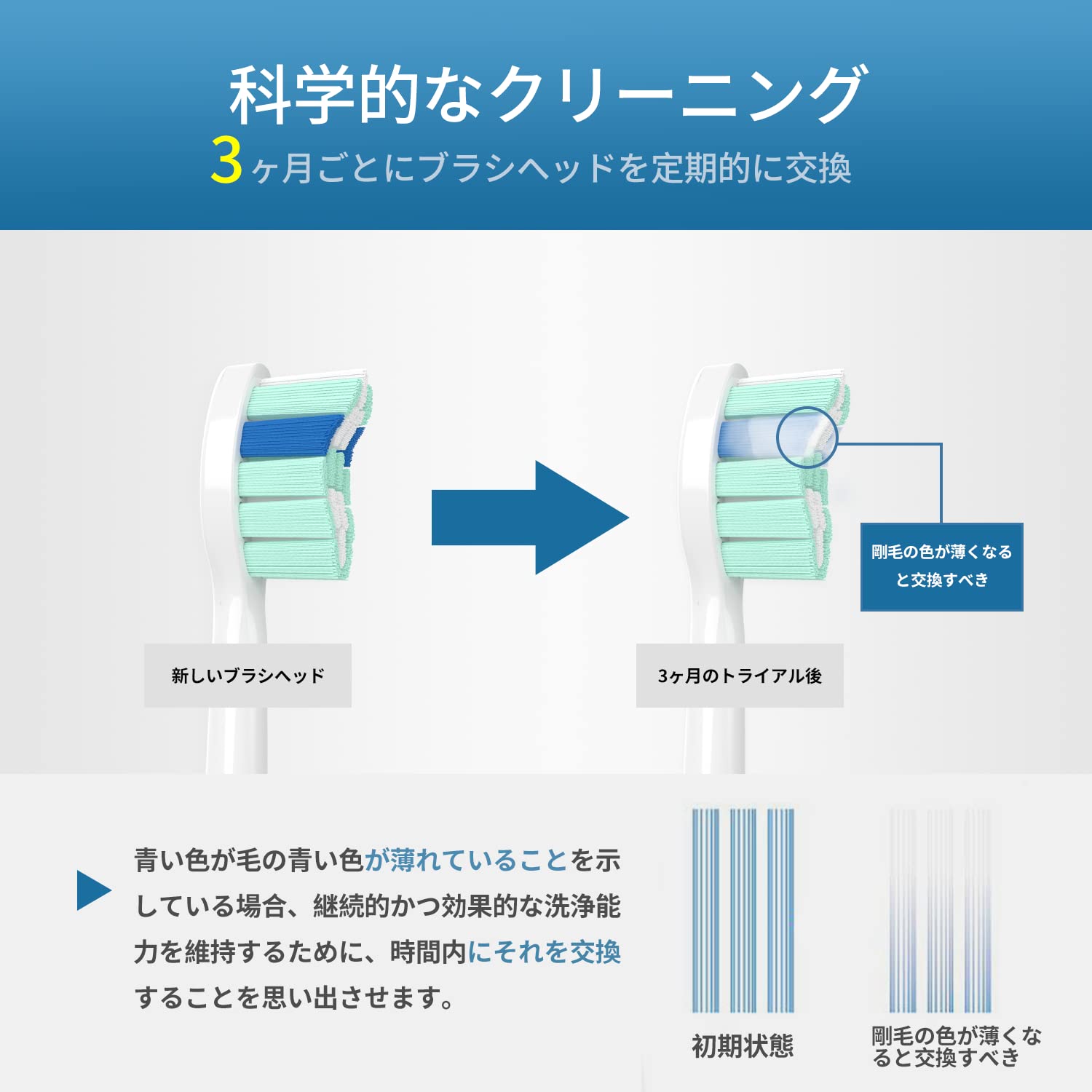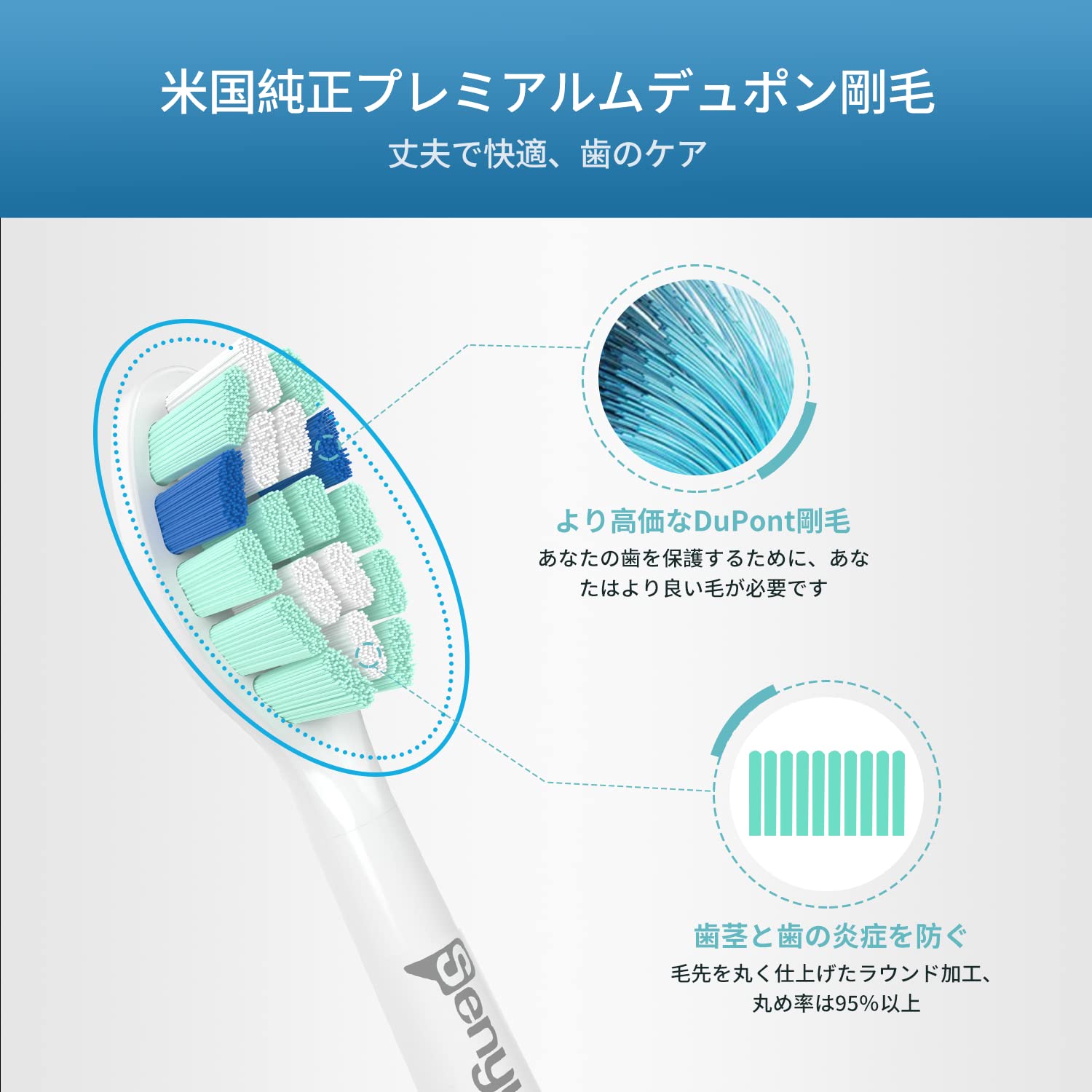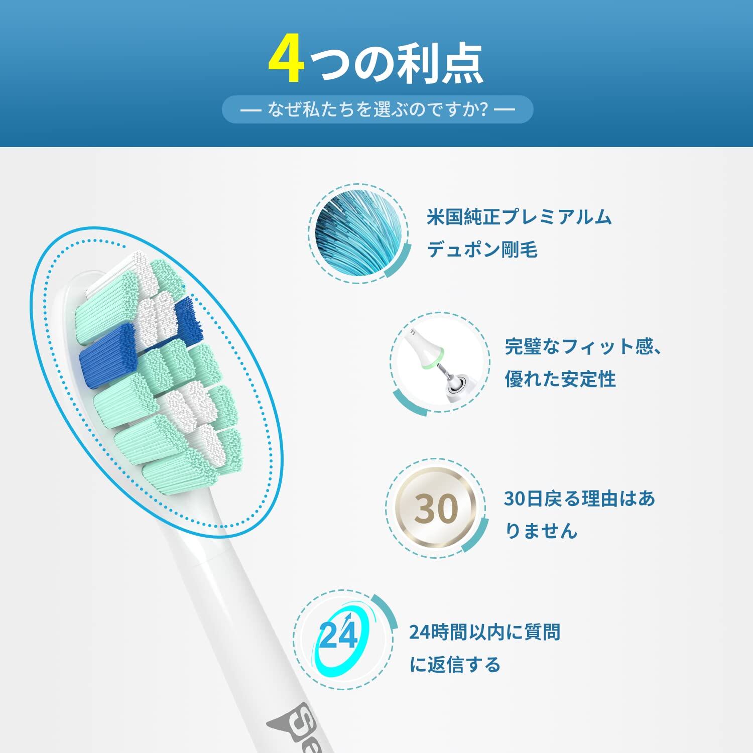 非常に快適で優れた耐久性:米国純正プレミアムデュポン剛毛(名前ブランドと同じ)の違いを感じます。当社の 替ブラシは、歯と歯ぐきをケアするために、丸みを帯びた毛の割合が多く、これまでにないようなより快適なブラッシング体験ができます。