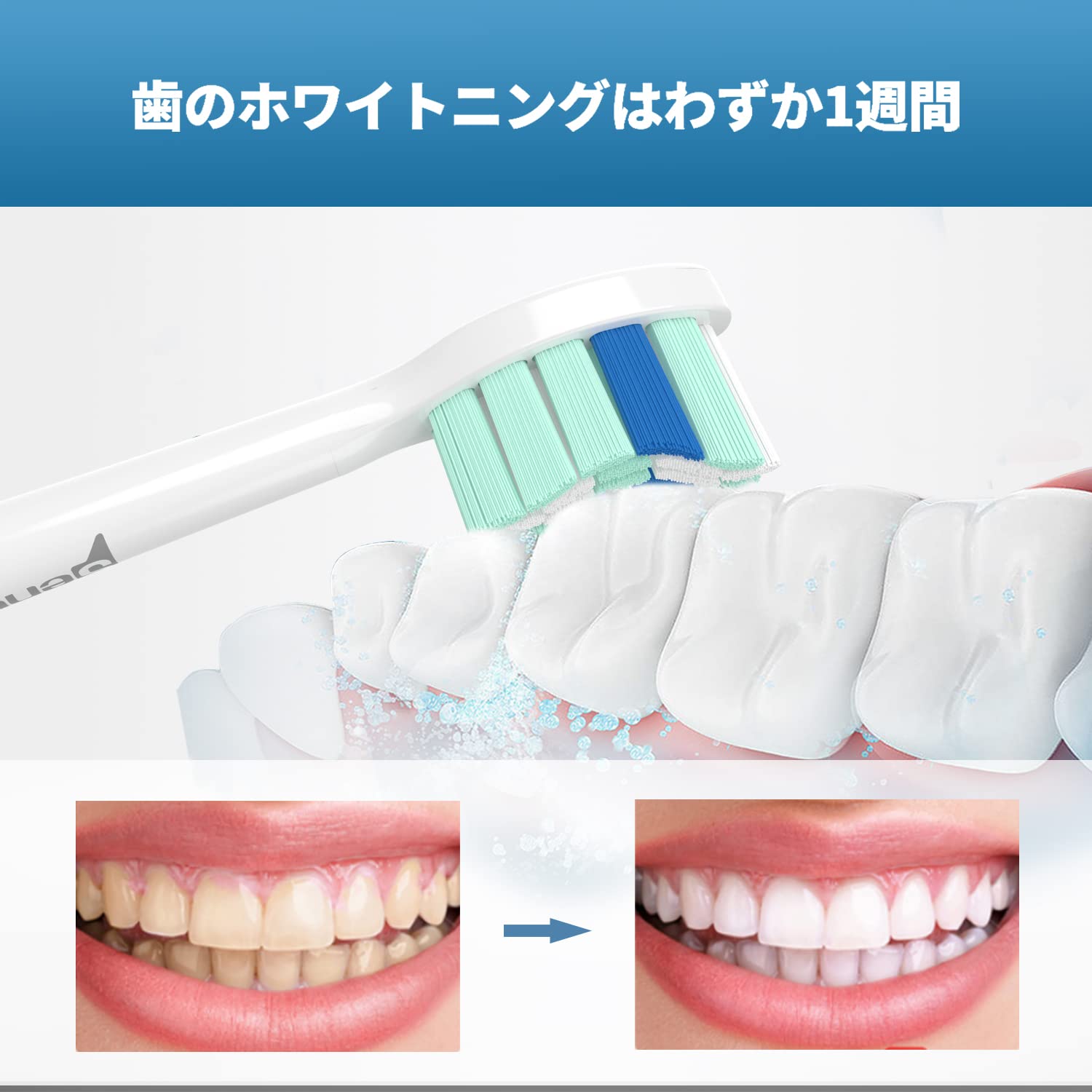 効果的な歯のクリーニングとホワイトニング:自信を持って笑顔になりましょう。強力な振動を伴う緻密な剛毛で、歯垢の7倍以上を簡単に除去し、カーブしたロングチップデザインで、届きにくい場所も徹底的に清掃し、1週間で白い歯を手に入れることができます。