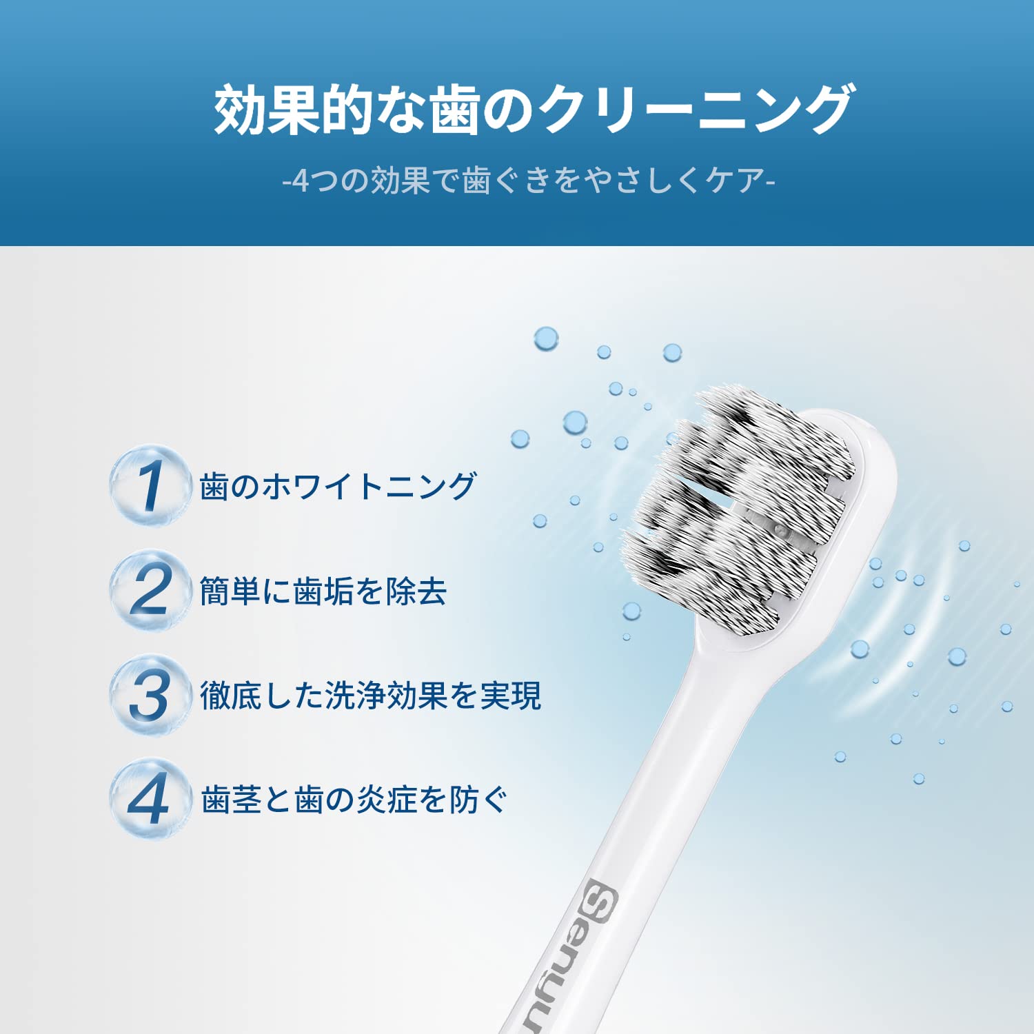 歯茎の健康を守る:毛の先端が丸形になって、表面の汚れをやさしく取り除くうえに、歯の間まで深く清潔にして、歯の汚れの形成を防止する。今すぐ歯茎全体の健康を保護して改善しましょう!