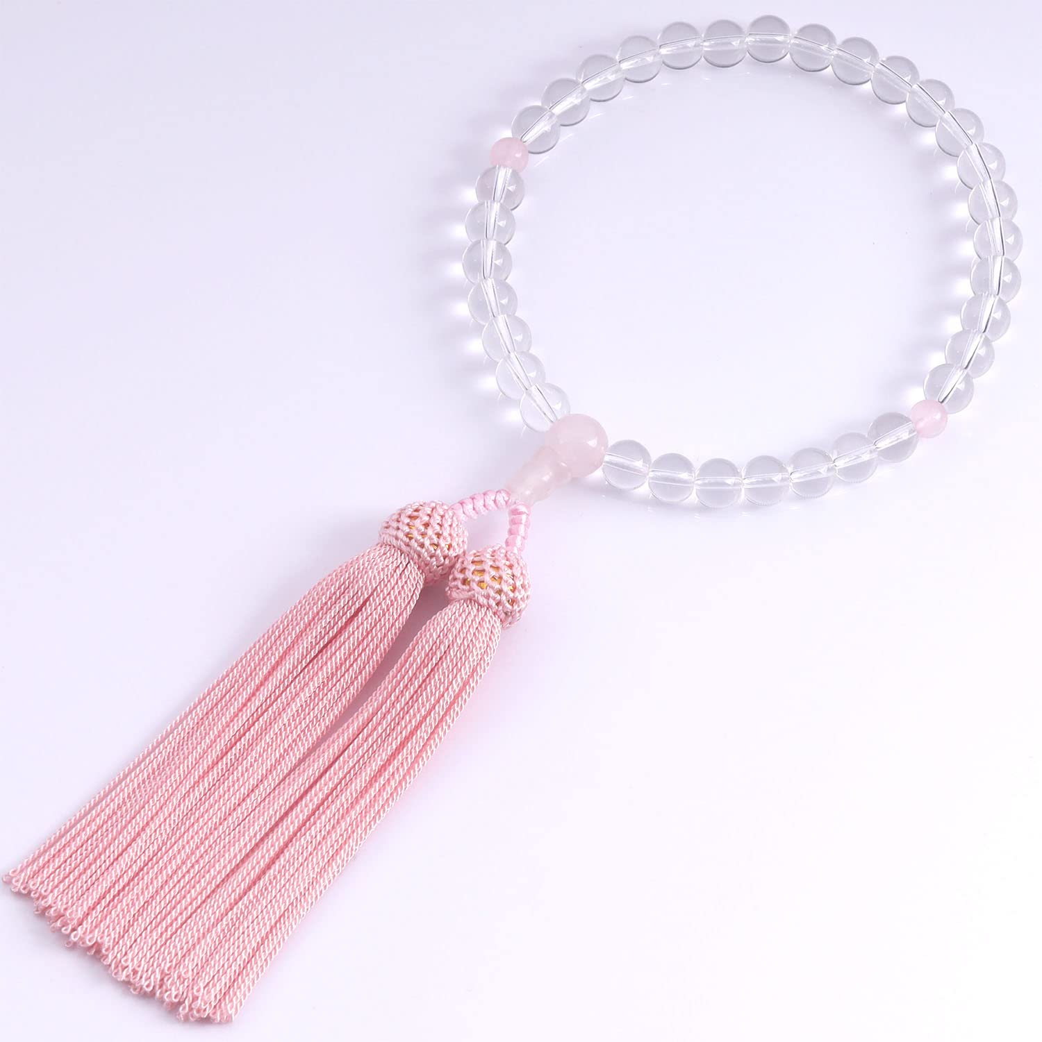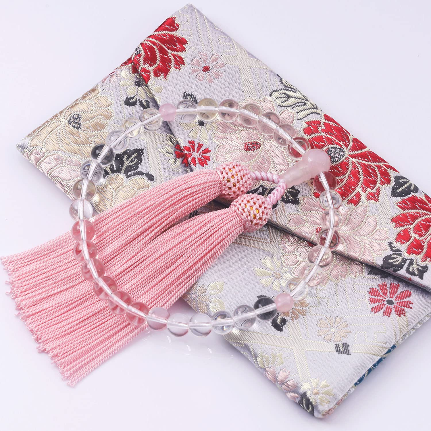 LEOBEE 女性用数珠 マグネット式数珠袋付き 念珠 じゅず 葬式 葬儀 法事 念誦 全ての宗派で使用頂け 水晶 落ち着いたピンク プレゼント