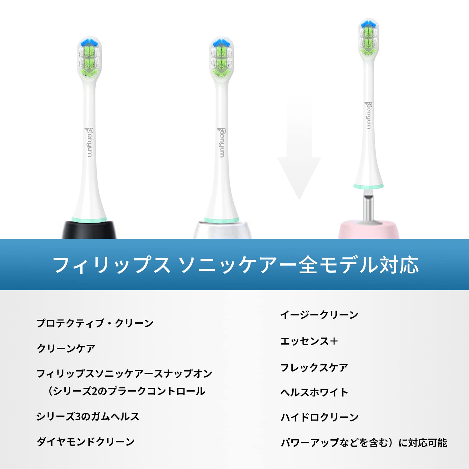 【ミニ進化モデル】Senyum 電動歯ブラシ 替えブラシ ミニコンパクト フィリップス ソニッケアー ダイヤモンドクリーン 交換用ブラシ対応可能 毛先が三角形でミディアム柔らかさ、洗浄力が高い(8本)