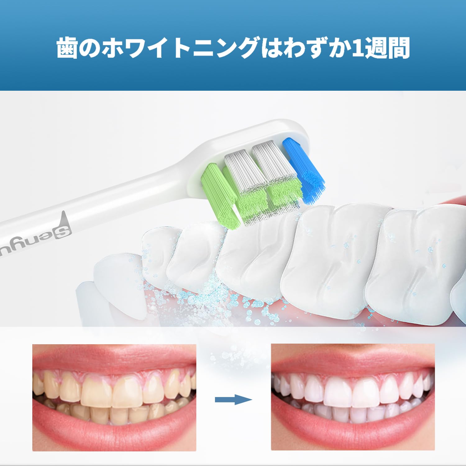 白い歯が輝く魅力的な笑顔:Senyum 電動歯ブラシ用替えブラシ(三角形毛)、ブラッシング接触面積を最大化にして、手動歯ブラシより7倍以上のクレンジング効果を提供できます。僅かな1週間で効果的なホワイトニングを実現します