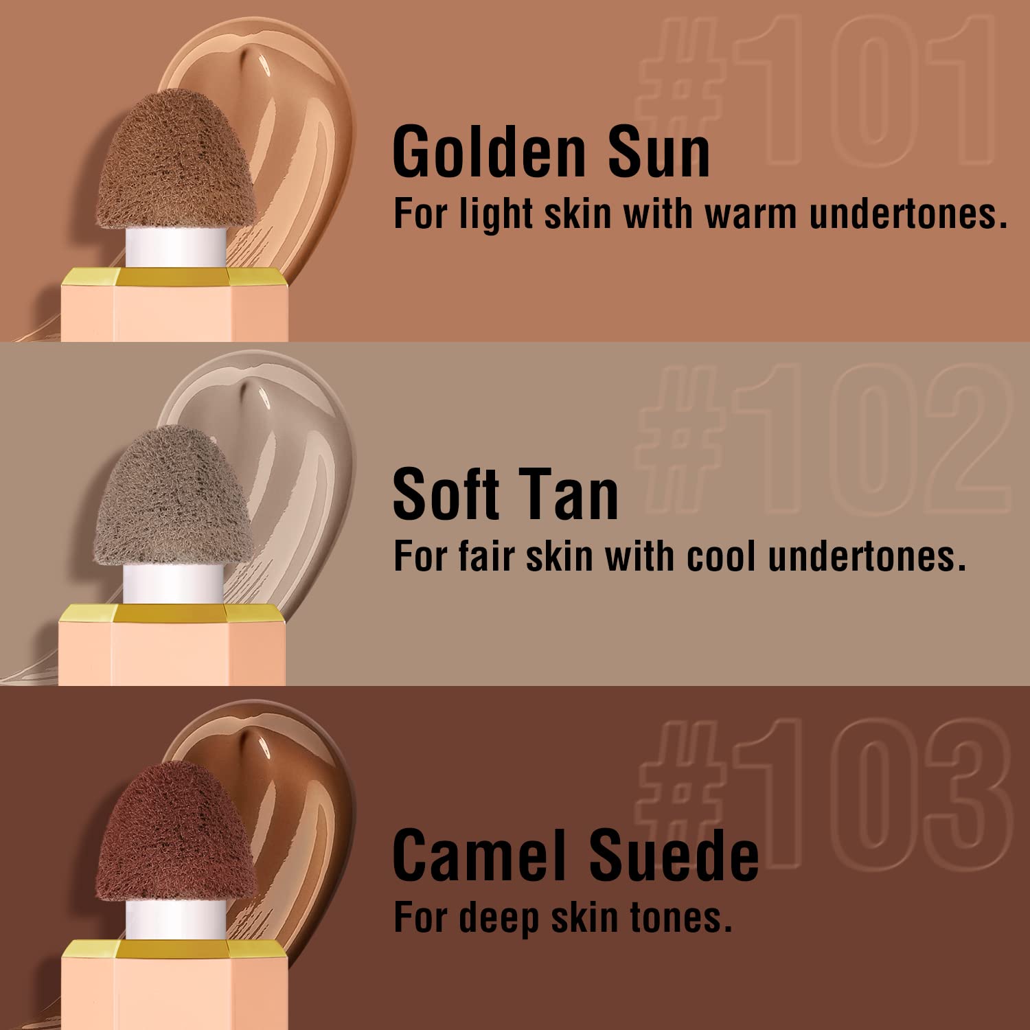 リキッドコントゥアーメイクアップ コンシーラー、プロのコンシーラー彫刻顔のメイクアップ、長続きする防水クリーミーブロンザー滑らかな自然なマット仕上げの液体輪郭 (#101 ゴールデン・サン)