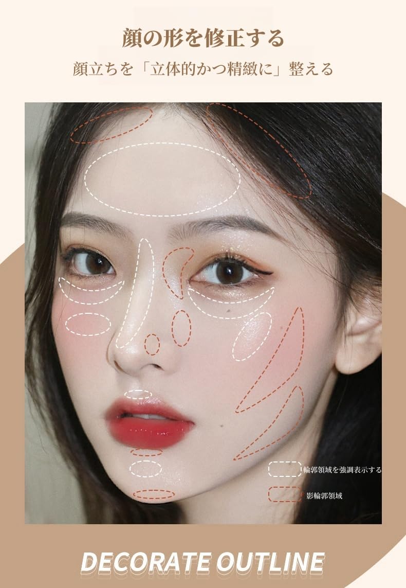 【用途は多岐に及びます】様々な化粧の鼻影棒は鼻筋、額、眉線、あご、鎖骨、眉骨、揉み、あるいは光、影、唇のラインの必要な所に適用して、簡単にハイライトを行うことができます。あなたが望む素敵なメイクをお届けします。