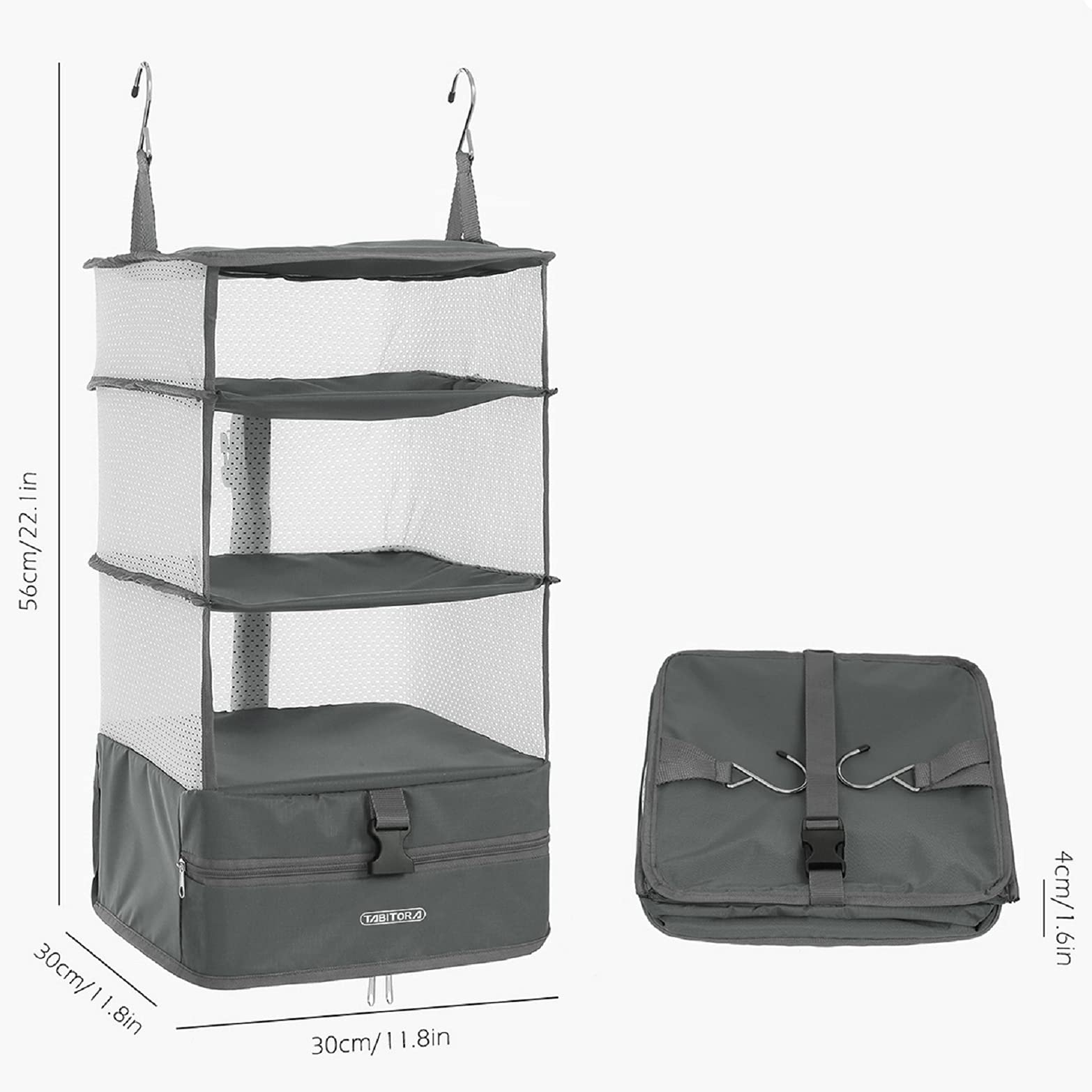 【努力特価】TABITORA(タビトラ) クローゼット吊り下げ収納 インナーバッグ 衣類ラック 収納 旅行 出張 クローゼット 収納ボックス 吊り下げ 省スペース 大容量 衣装ケース 4段 取付簡単 折り畳み式 グレー L