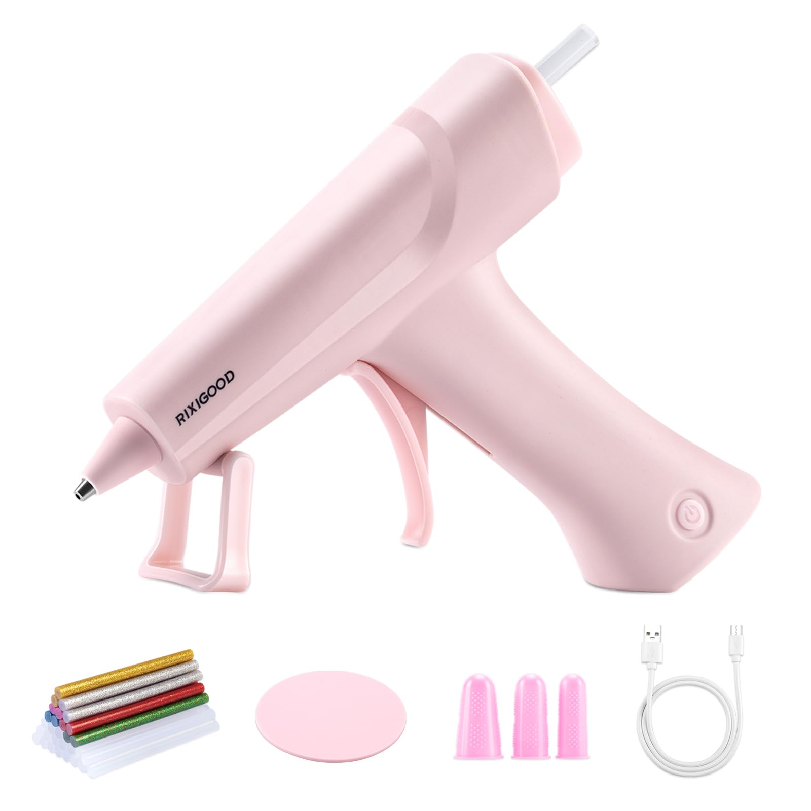 RIXIGOOD コードレス グルーガン キット 7mm グルースティック 30本付き USB 充電式 ホットボンド コードレスグルーガン 小型 軽量 ぐるーがん DIY 手芸 木工 補修 粘着工具 ピンク