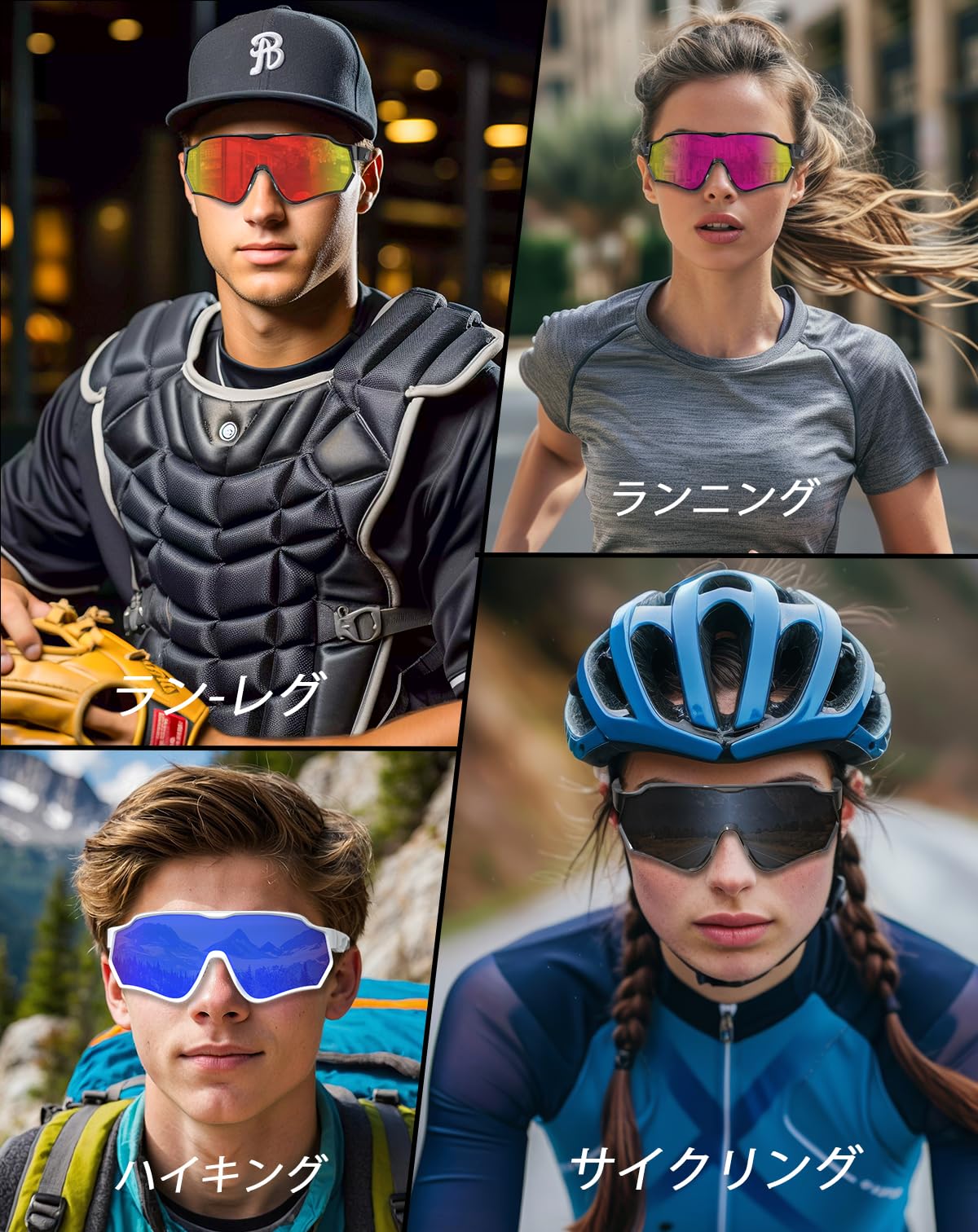 TAC材料: すべてのレンズは高品質破砕防止TAC材料で作られており、十分に耐久性があり、長期的に着用することができます。軽量なTR90フレームの設計は、ランニング、野球、運転、釣り、登山、オートバイや自転車、レース、スキー、トレッキング、アウトドアなどに最適で、剃りにくく、壊れにくい。色彩豊かなレンズはファッションとスポーツを組み合わせ、男性と女性が着用するのに適しており