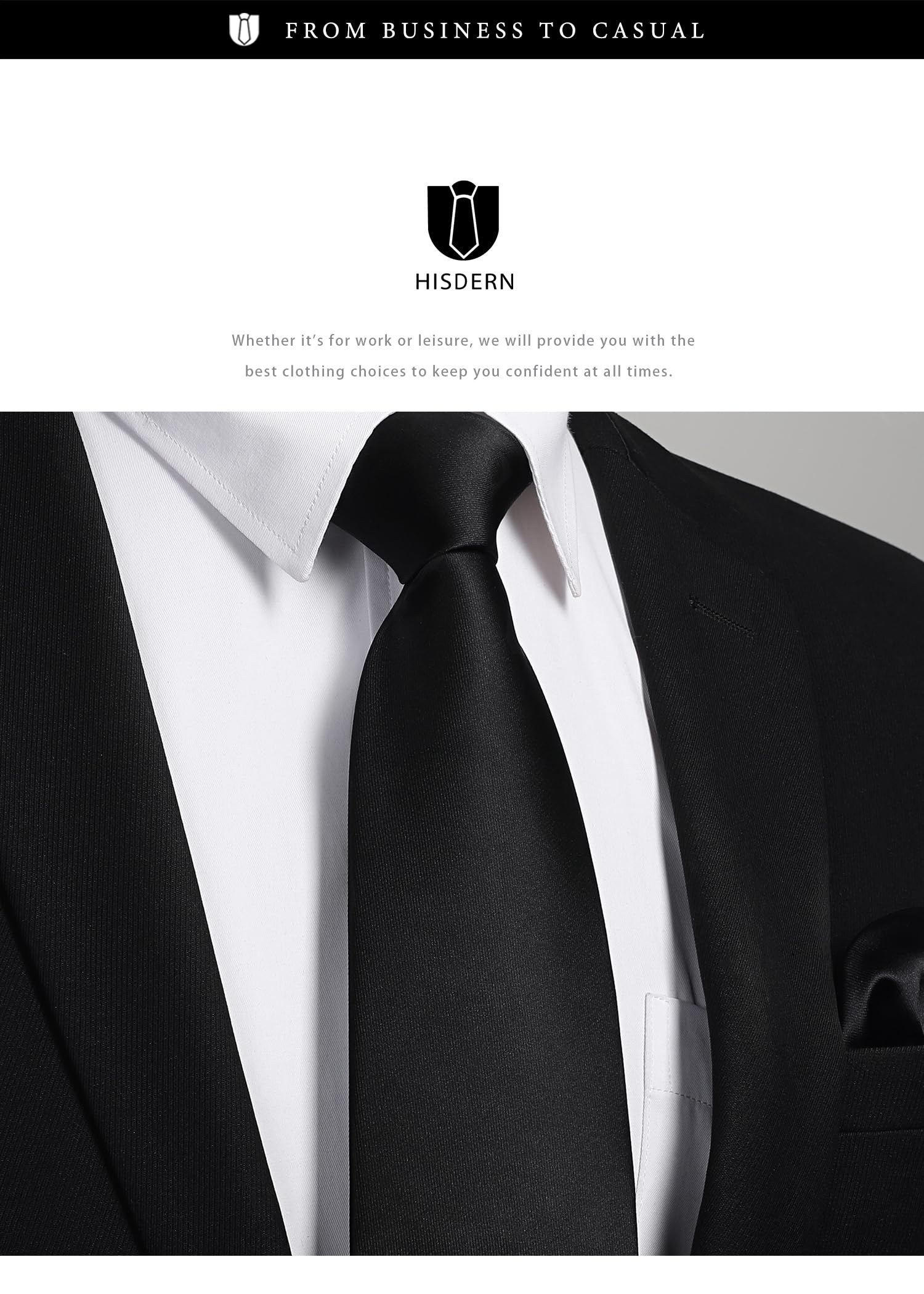 ??「定番の黒ネクタイ」日常に欠かせない一本のメンズ用黒ネクタイです。無地、ペイズリー、杢柄、花柄など、定番のデザインがあり、ビジネス、冠婚葬祭、就活、二次会、入学式、卒業式、成人式など、さまざまなシーンに適しています。