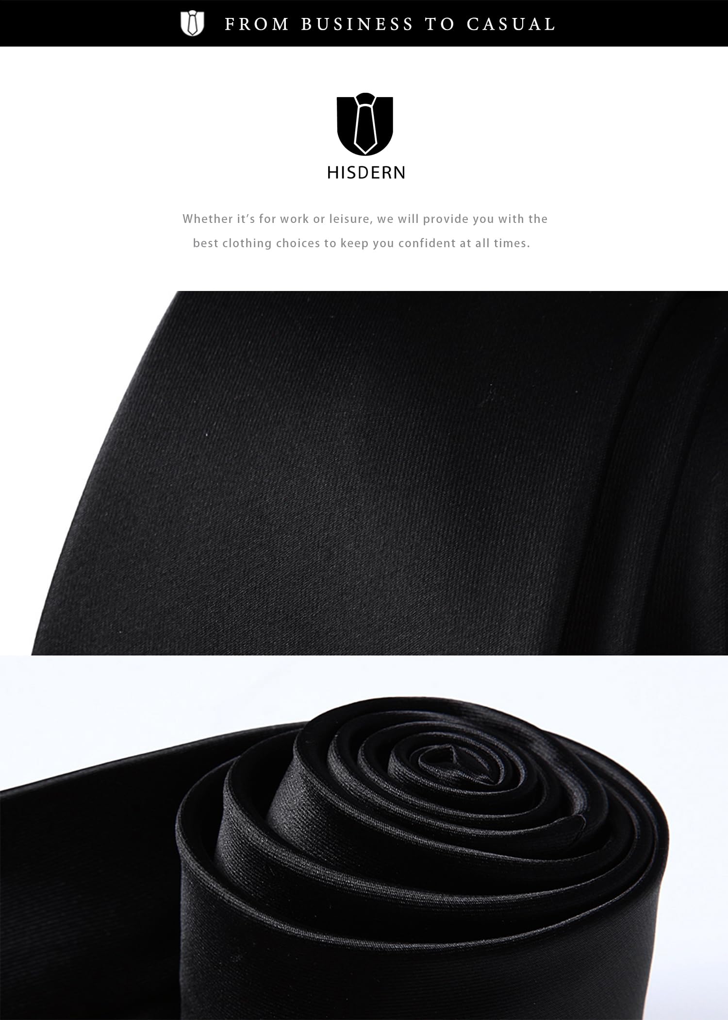 [HISDERN] D-01 ネクタイ 黒 フォーマル メンズ 男 冠婚葬祭 黒ネクタイ 葬式 葬儀 お通夜 無地 ブランド 葬礼 弔事 法事