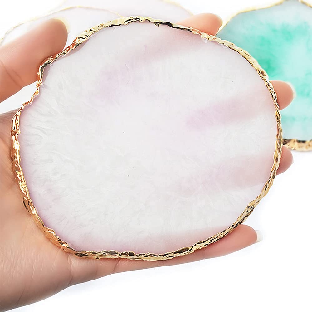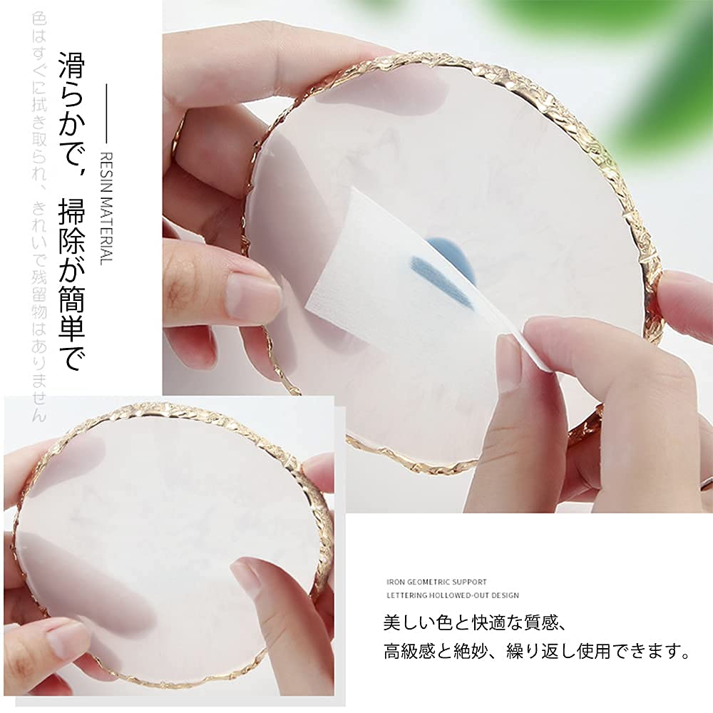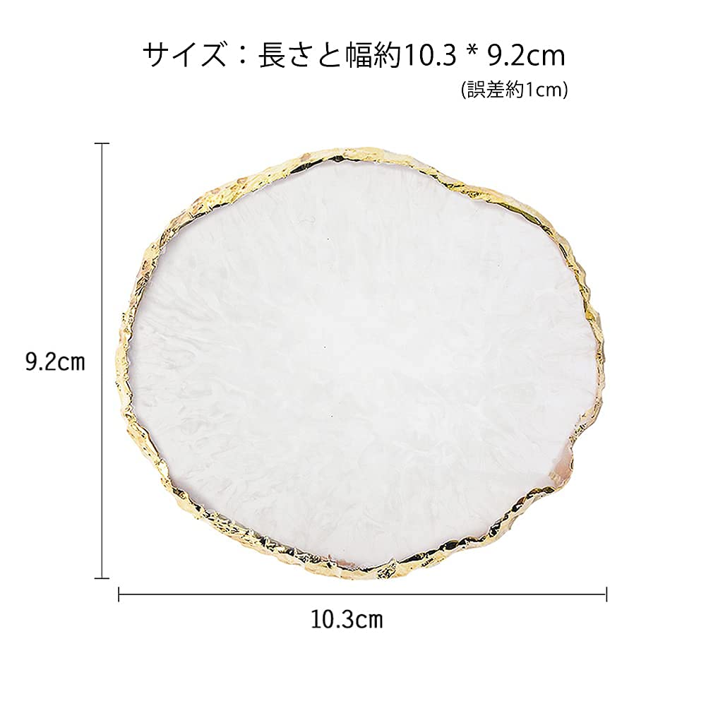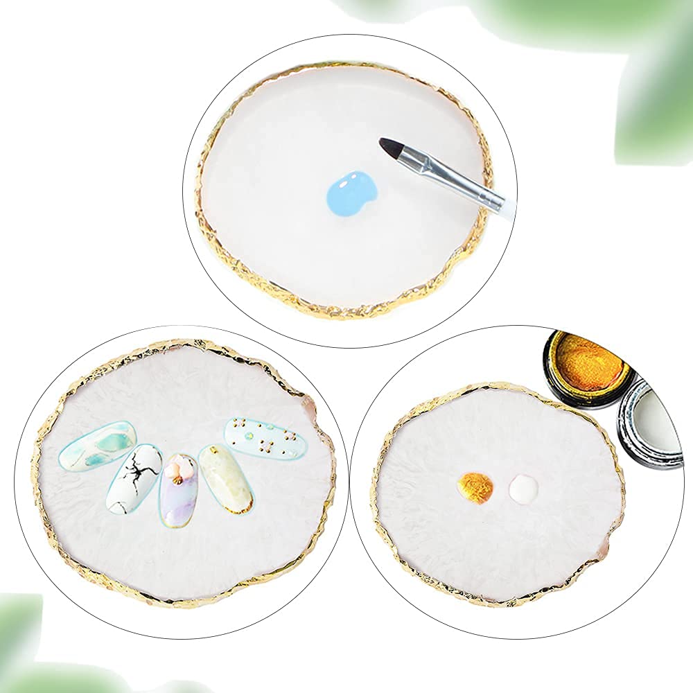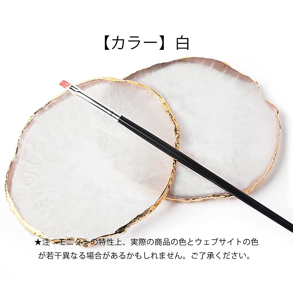 LIKENNY ネイルアートパレット 天然樹脂ストーン ネイルアートパーツ ネイル ジェル パレット 瑪瑙 コースター ゴールドエッジ 丸い形 絵皿 用具 ホワイト
