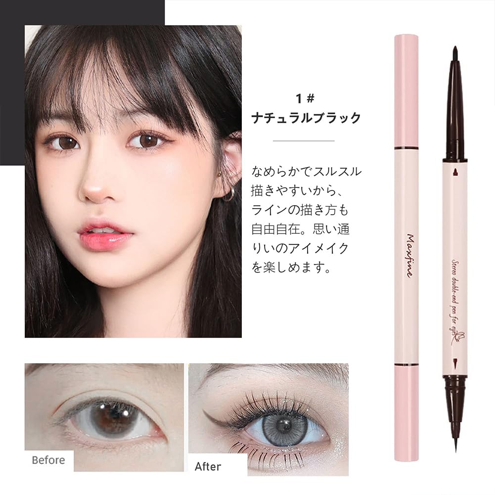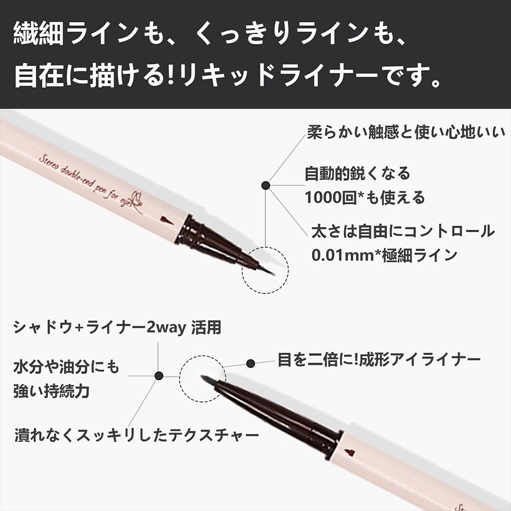 【2-in-1アイライナー】0.01mm超極細リキッドアイライナー+0.01mmジェルアイライナー、2-in-1ティアドロップバッグまたはグラデーションメイク用アイライナー。 ソフトなストロークで安定した極細ラインが描け、思い通りのアイライナーが簡単に描けます。 ヒップでも目の周りでも、なめらかで個性的なアイラインが思いのままに描けます。 もう怖いアイライナーは必要ありません。 初心者でも簡単
