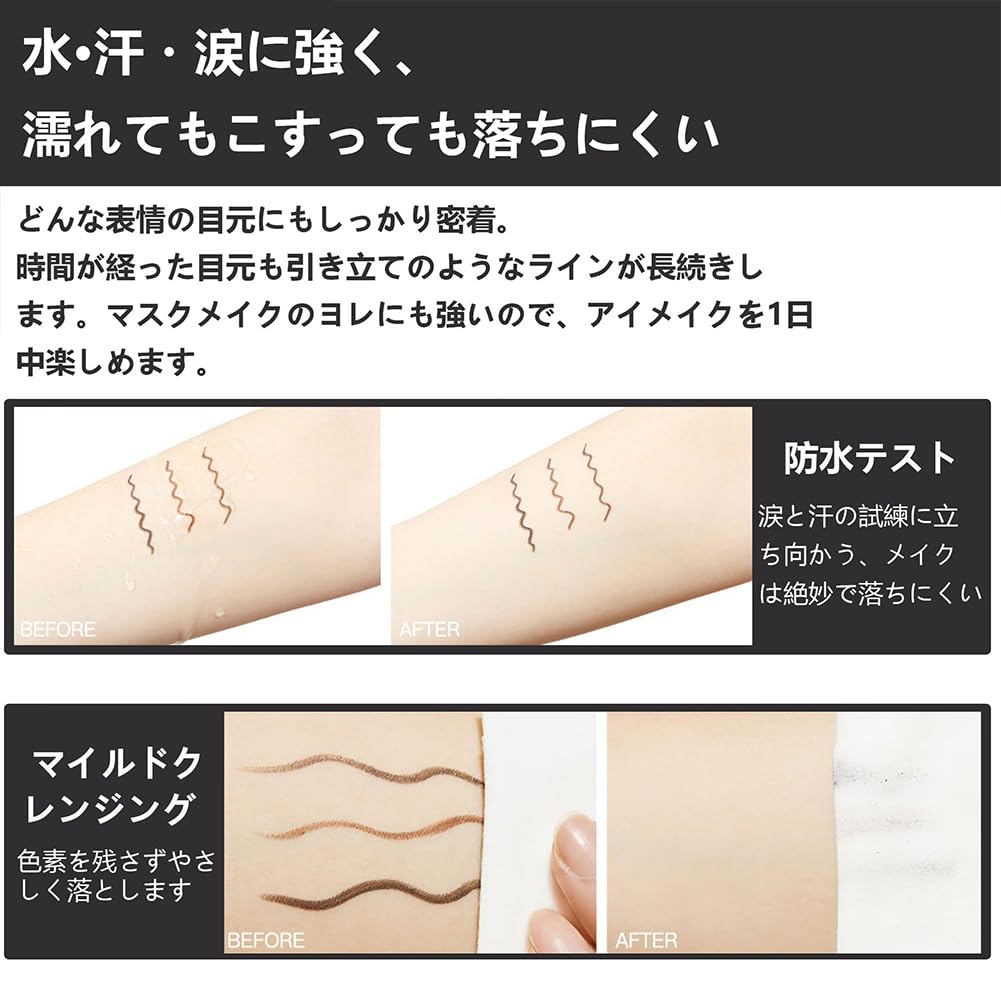 【防水・皮脂に強く落ちにくい】目元の皮膚に密着し、拭いても水洗いしても落ちません。 削りやすく、乾きが早く、まばたきしてもまばたきしない、必需品のアイライナーです。 時間が経つと耐えられなくなる可能性があります。 お出かけに欠かせないアイライナー