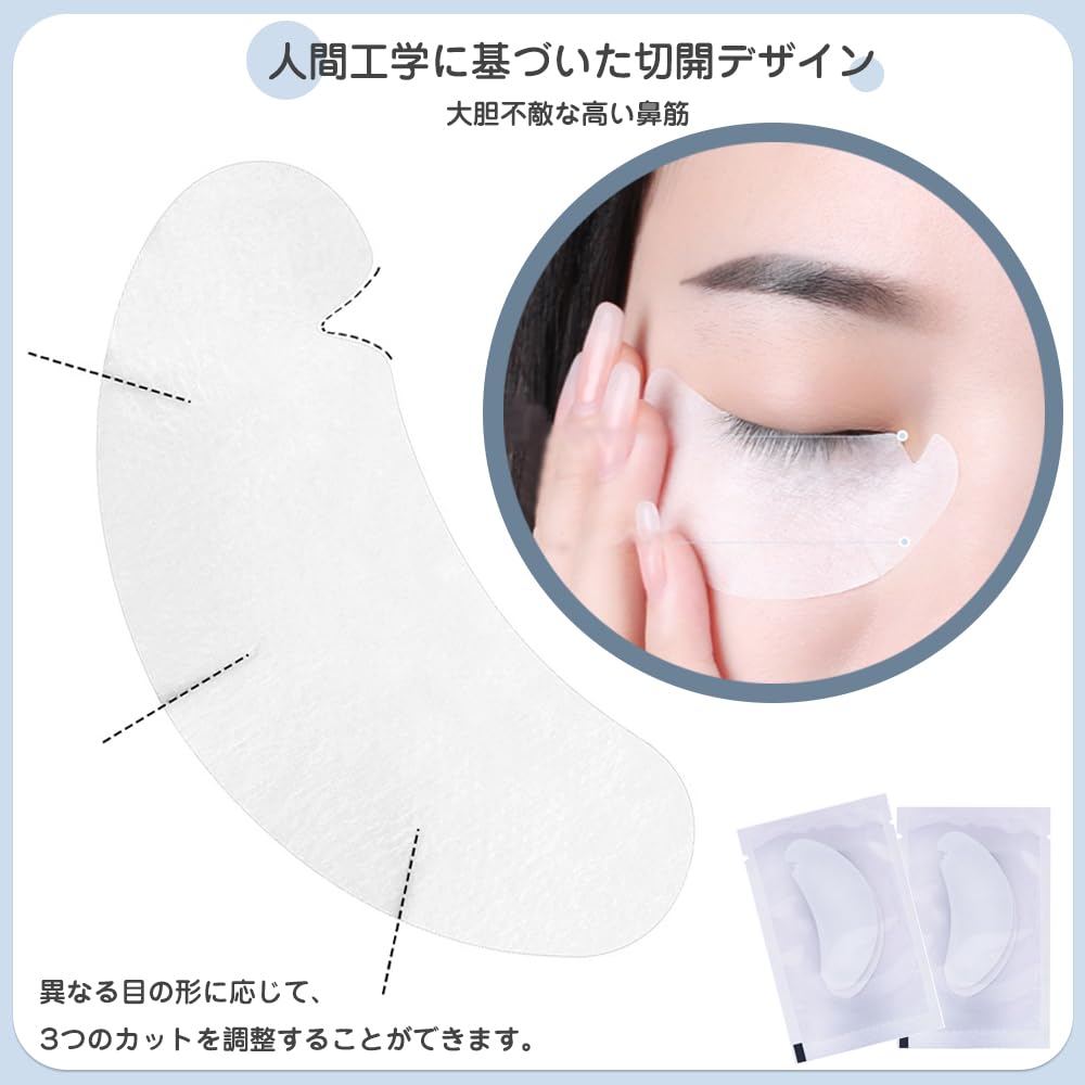 人間工学に基づいた切開デザイン:異なる目の形に合わせて3つの調節可能な切開。新しいU字型の切り込みデザインは、目尻の傷を防ぎ、まつげエクステをより快適にします。