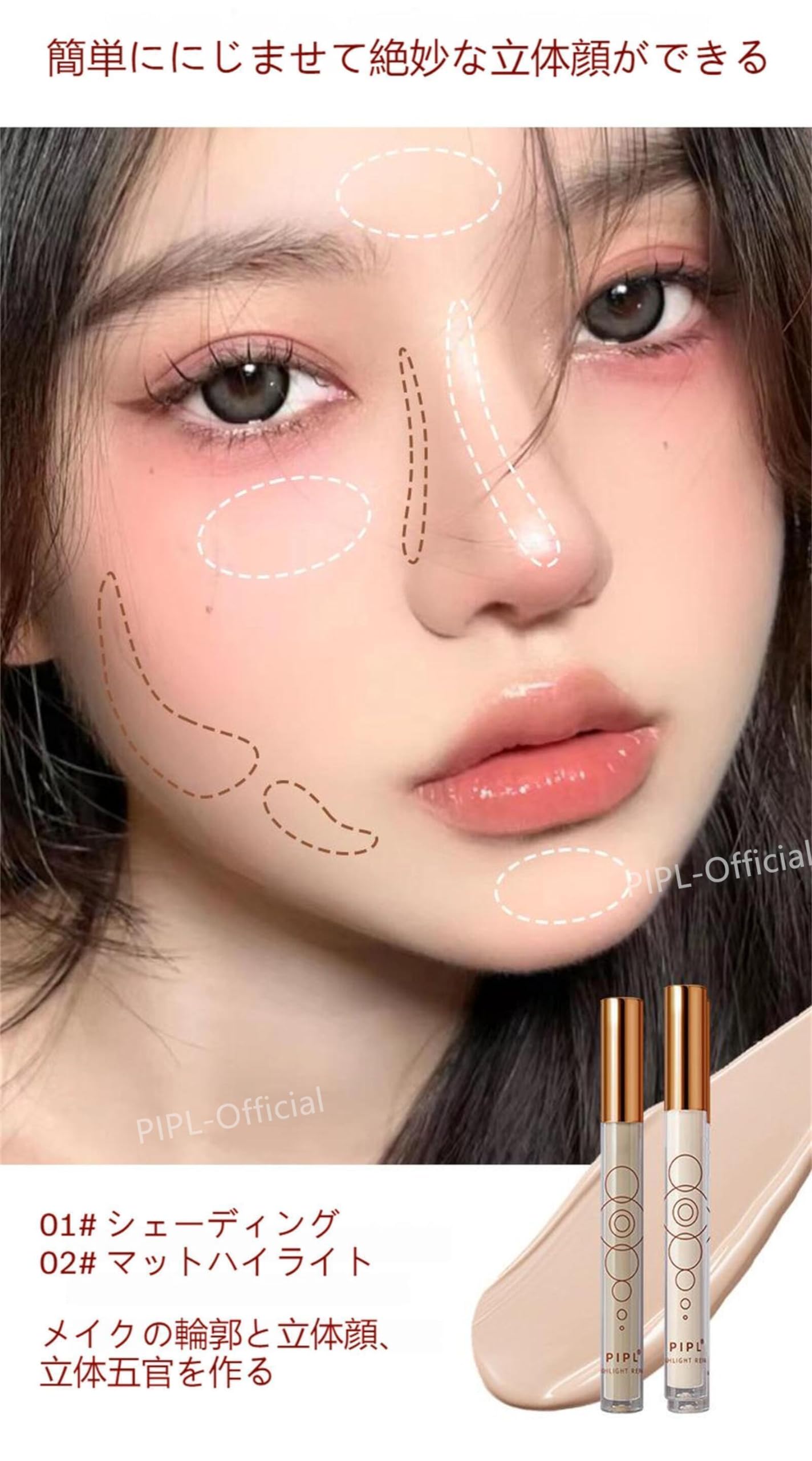 PIPL 立体創造 シェーディング ハイライト リキッド スティック ノーズシャドウ 輪郭 マットハイライト コンシーラー 自然メイク 小顔 立体顔マット 鼻筋 初心者コスメ (シェーディング+マットハイライト(01#+02#))
