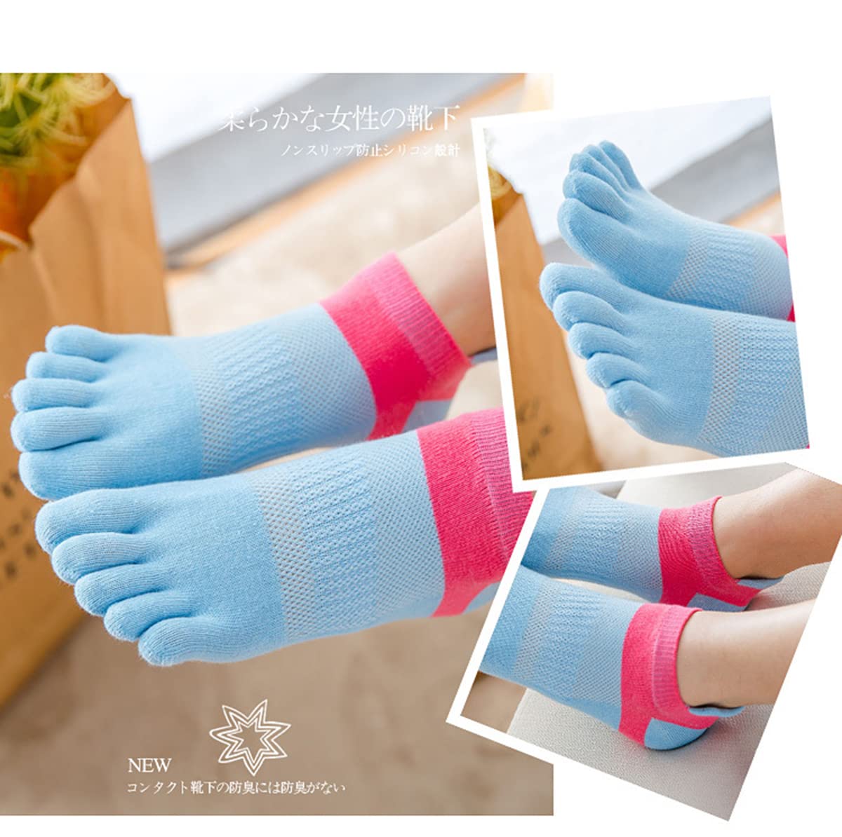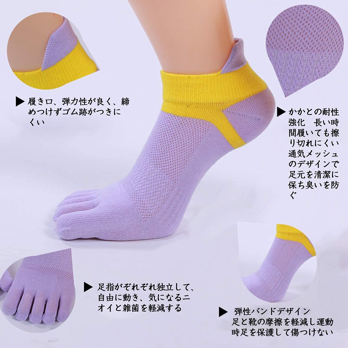[DAMILY] 靴下 五本指ソックス レディース 春夏用 スニーカー くるぶし靴下 女性 スポーツ用 ランニングソックス ショート丈 綿 カジュアル コットン くつ下 おしゃれ 蒸れない 5本指靴下 カラフル 5足セット 22-25cm
