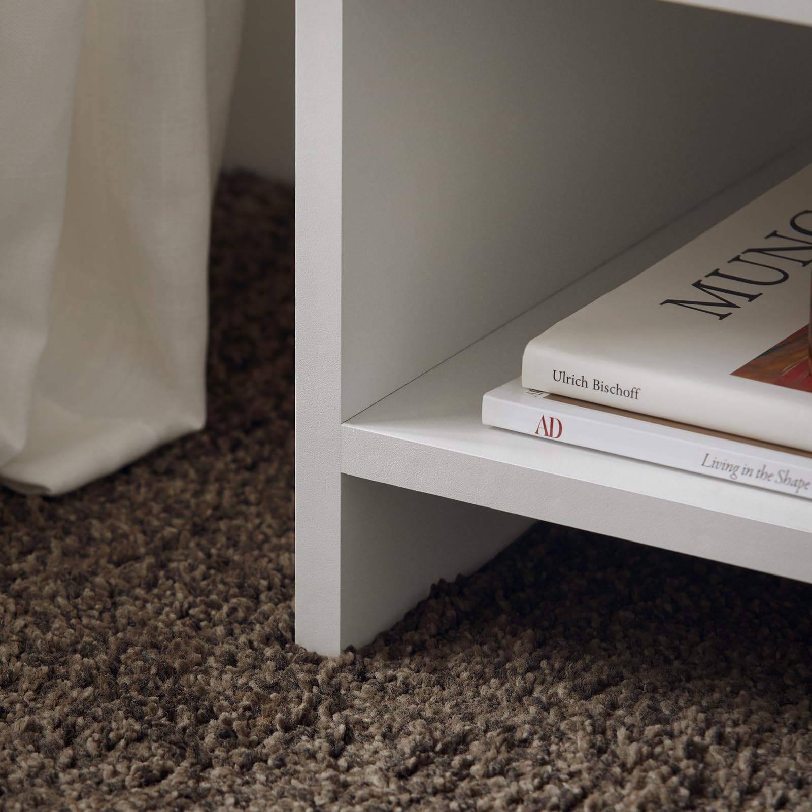 ??【24kg耐荷重&日常使いにぴったりの安定性】上段・下段の棚はそれぞれ最大8kgまで、引き出しも8kgまで対応可能。トータルで約24kgの収納力を確保し、日常使いの本や時計、ランプなどをしっかりと置けます。揺れにくい構造で、ナイトテーブルやローテーブルルとして快適に使用できます。
