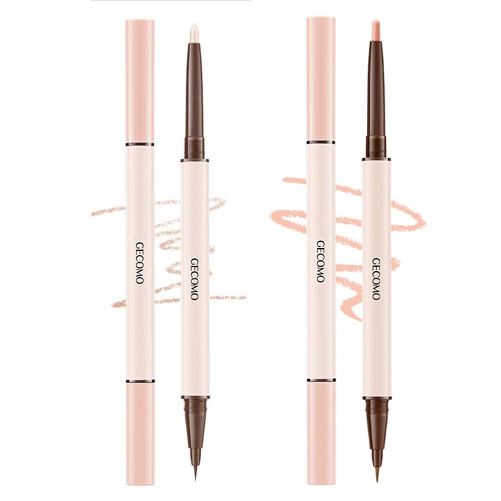 2PCS GECOMO【人気】二重芯アイライナー 涙袋ライナー ウォータープルーフペンシル【ペンシル & リキッド 2in1】マベニ 人気コスメ高密着 ダブルラインエキスパート 影用グレージュ ふたえを強調 リキッド 描くふたえ(01#+02#)