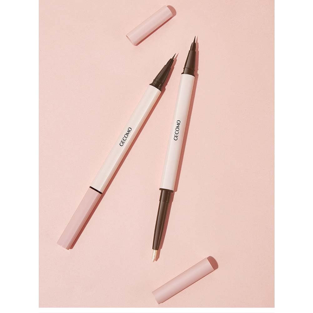 【2 in 1 アイライナー】2 in 1 涙袋にもアイライナーにもなり、 グラデーションメイクも可能! 0.01mm極細リキッドアイライナーヘッドで + 2.0mmジェルアイライナーヘッド。しなやかな筆運びで安定した極細ラインを描けるから、思い通りにアイラインが引きやすいです。目尻でも目頭でも目の際でも狙った通りになめらかな自分なりの魅力を放つアイラインが描けます。タレ目でも跳ね上げでも!アイラインはもう怖くありません!初心者でもチョーイージー!