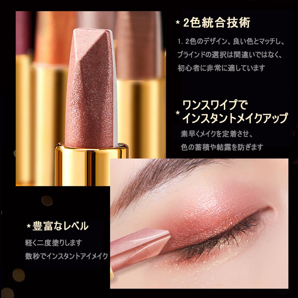 二色アイシャドウスティック アイシャドウ ペンシル キラキラ アイシャドースティック クレヨン シェーディング 光アイシャドウ 涙袋 アイシャドウペン 防水 ハイライト 輝く うるうる瞳 多色 - FM04#マーメイドジー