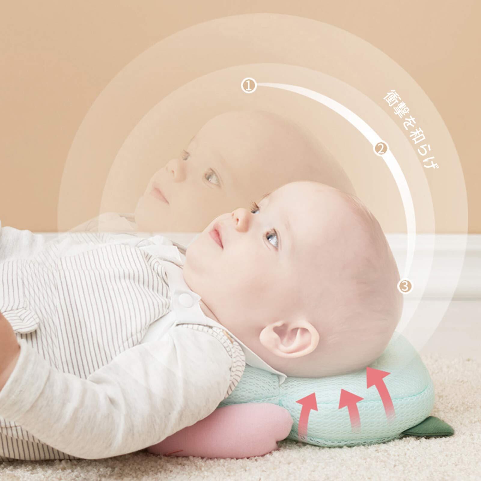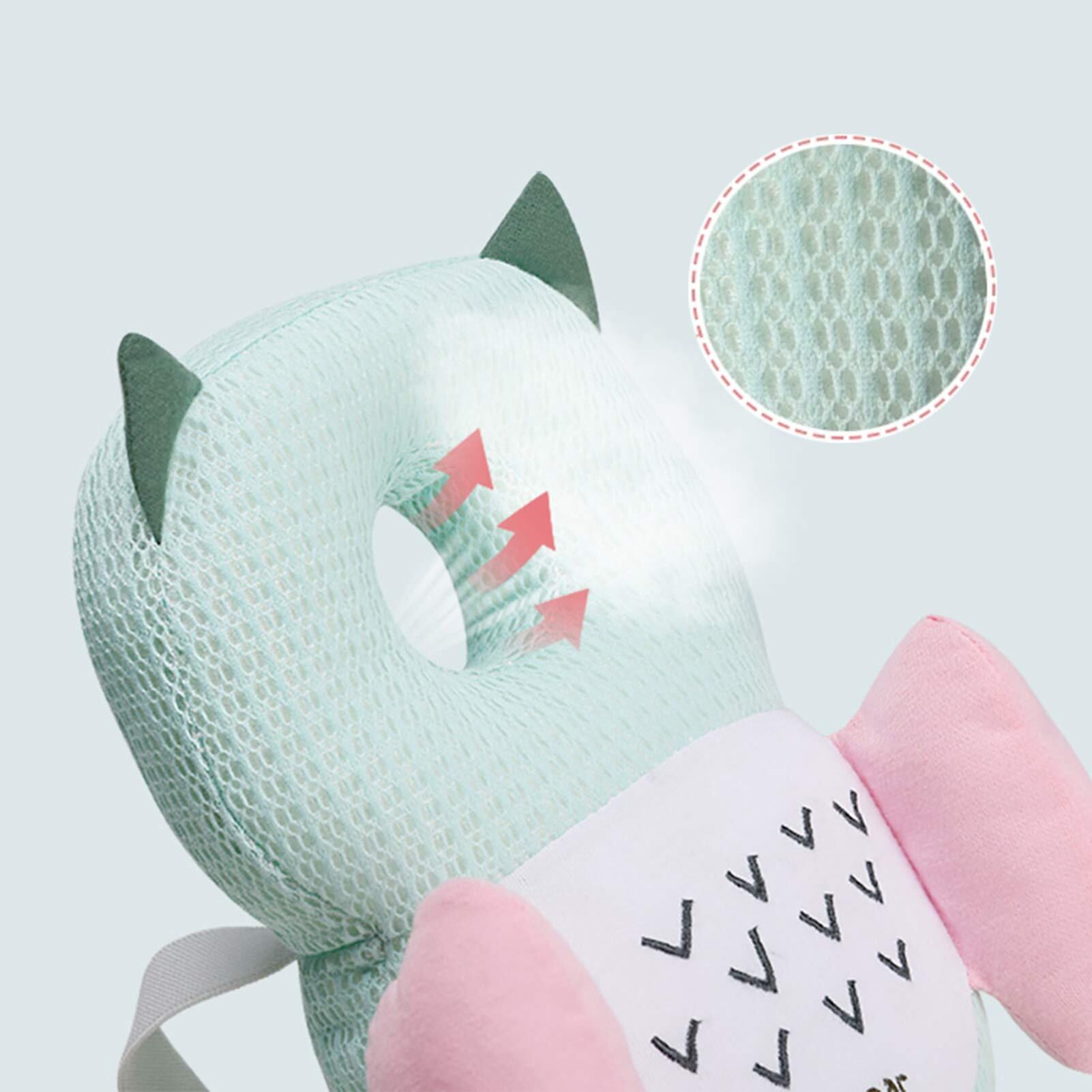 【頭部保護】中空の形とメッシュ構造のために、頭部分は蒸れずに通気性と安定性が抜群です。外部からの衝撃を和らげて、赤ちゃんの頭部をしっかり守ってくれます。