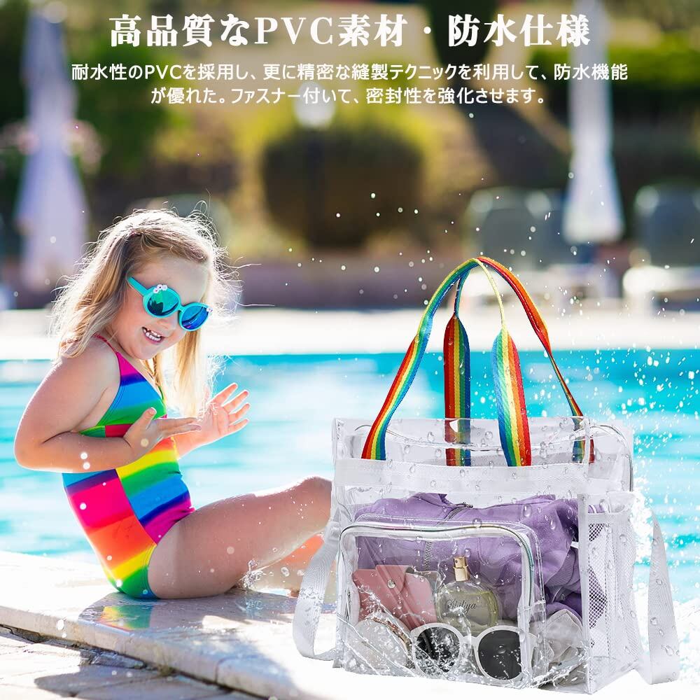 プールバック ビニールバッグ 2way 手提げ・肩掛け トートバッグ ショルダーバッグ PVC素材 防水 透明 大容量 ビーチバッグ クリアバッグ スイミングバッグ 温泉 旅行 出張 水泳 海 水遊び 砂場遊び用