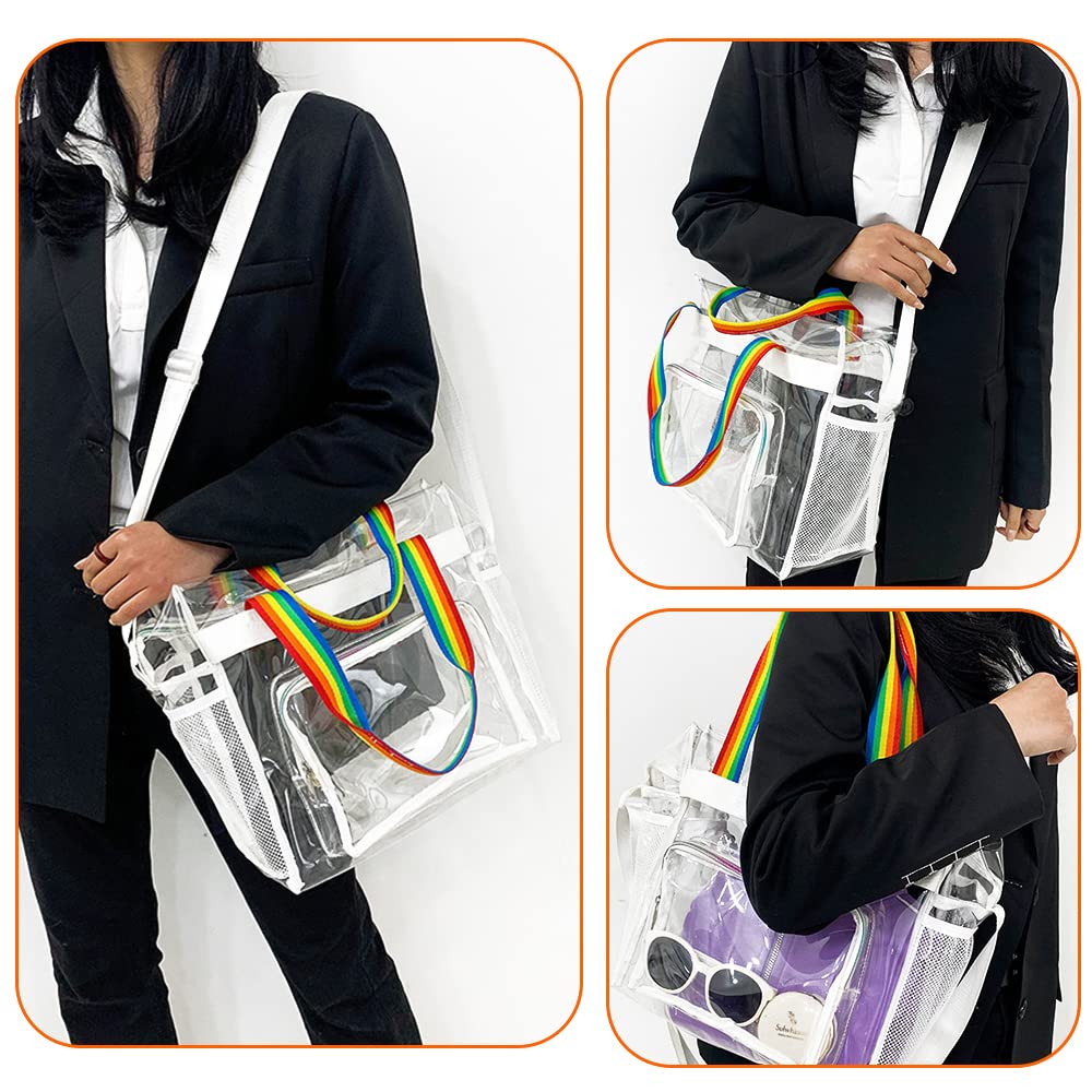 【 2way 手提げ・肩掛け、使用便利さ】:このビニールバッグは、ショルダーとトートになる2wayのバッグ、幅広いショルダーストラップの設計で長時間に肩にかけても痛くなりにくい、また、紐は好みの長さに調整できるため、使い勝手がよい。荷物が多い場合に、ショルダーの方式を変換して両手を解放できます。