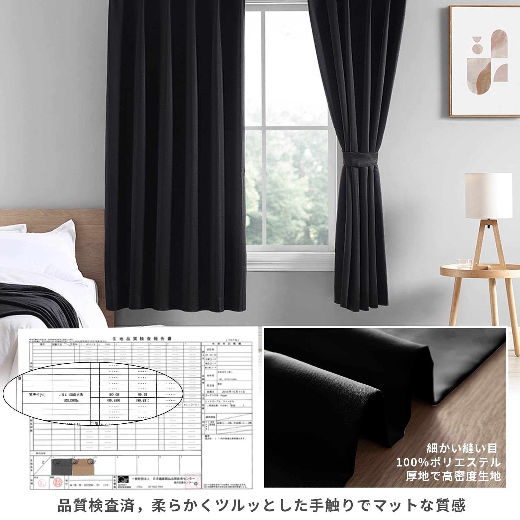 Hansleep カーテン 黑 1級遮光 2枚組 ブラック 断熱 かーてん 防寒 防音 省エネ 厚手 無地 おしゃれ 洗える 寝室 リビング用 (ブラック 幅100cm×丈178cm)