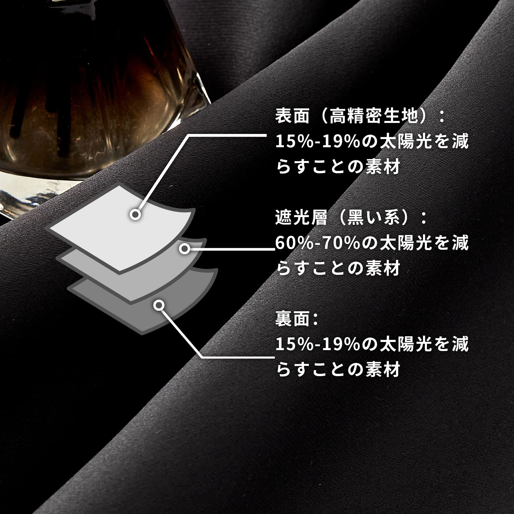 ◆【三重織り技術】生地は三重構造のテクノロジーの技術利用して黒い系を織り込んでいるから、優れた遮光機能が備えております。きちんと室外からの日差しや紫外線などをしっかり遮られる機能付きの厚地遮光カーテンです。