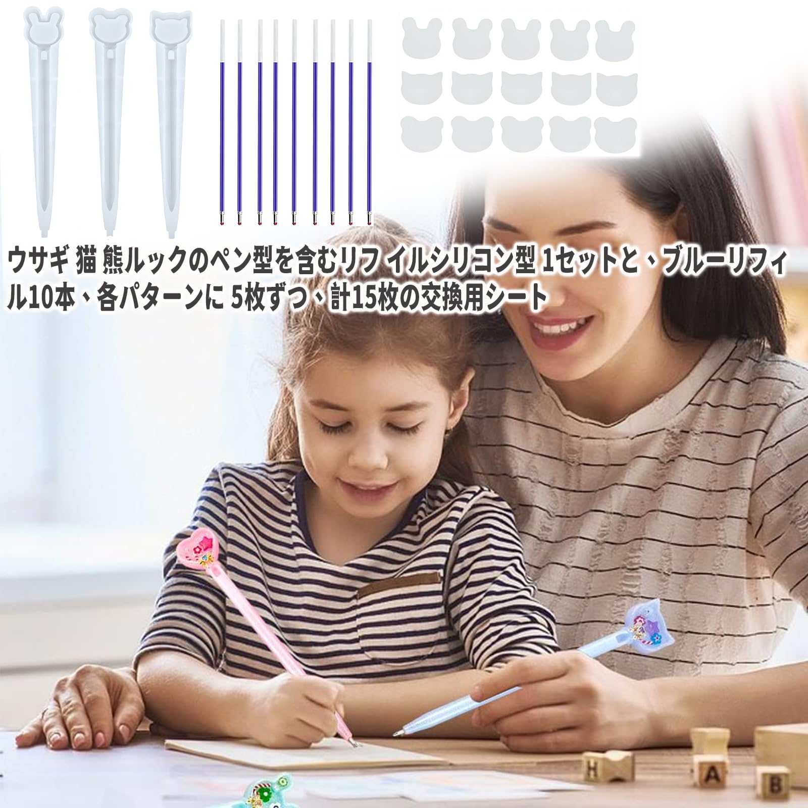 【パッケージ内容】シリコーン製の型が3つ、シート15枚、ペンの芯が10本。