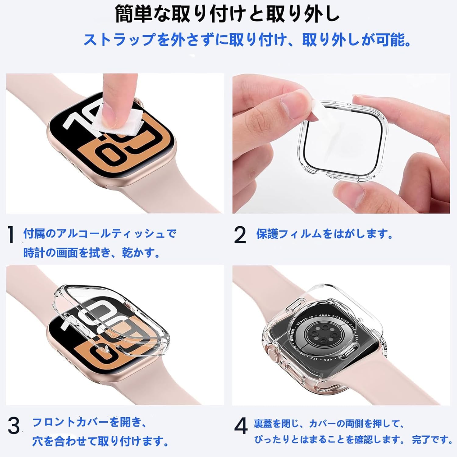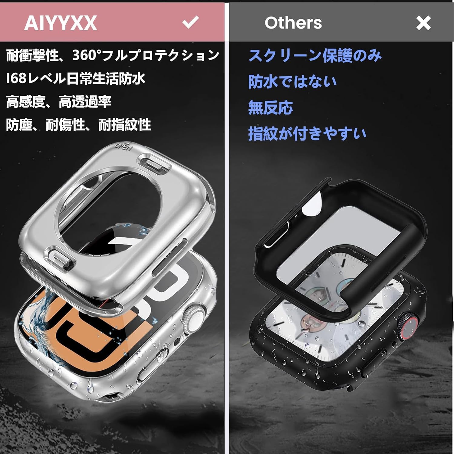 ?【360ど度 防水設計】:アップルウォッチ 10 カバーの防水機能は全面的にアップグレードされました。新型保護ケースでは、スクリーンの強化ガラスフィルムの下部に防水ソフトラバーシーリングリングが内蔵されており、水がガラスフィルムと本体の間に入るのを効果的に防ぎ、日常使用中に水に触れることで生じる画面タップ問題を回避し、日常のスポーツや水上活動に最適です。
