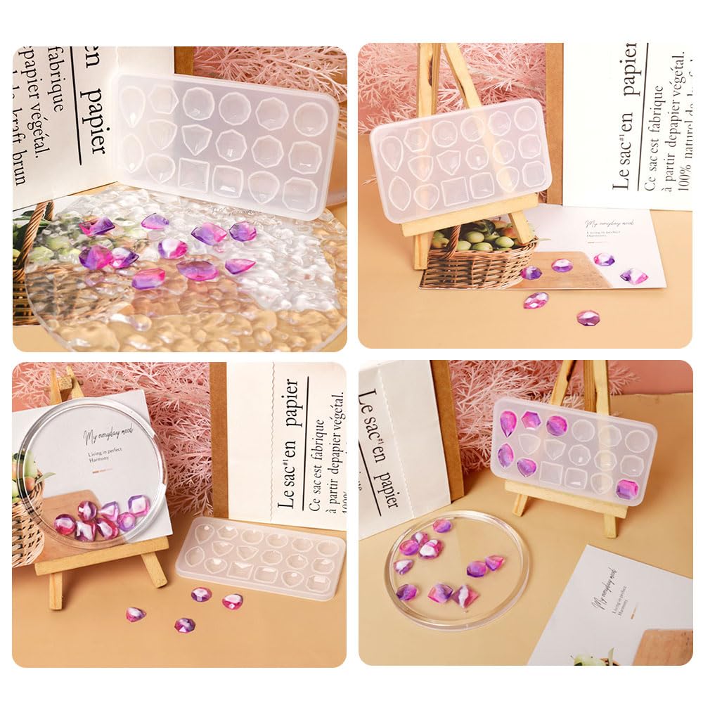 サムコス シリコンモールド レジン 宝石 立体 3D シリコン型 ジュエリー パーツ DIY 手芸 uvレジン ピアス イヤリング ネックレス ペンダント キーホルダー アクセサリー パーツ 作成 半透明 ドロップ 半円 半球 水滴 丸 球体 長方形 正方形 四角 抜き型 キット 道具(2個セット 宝石)
