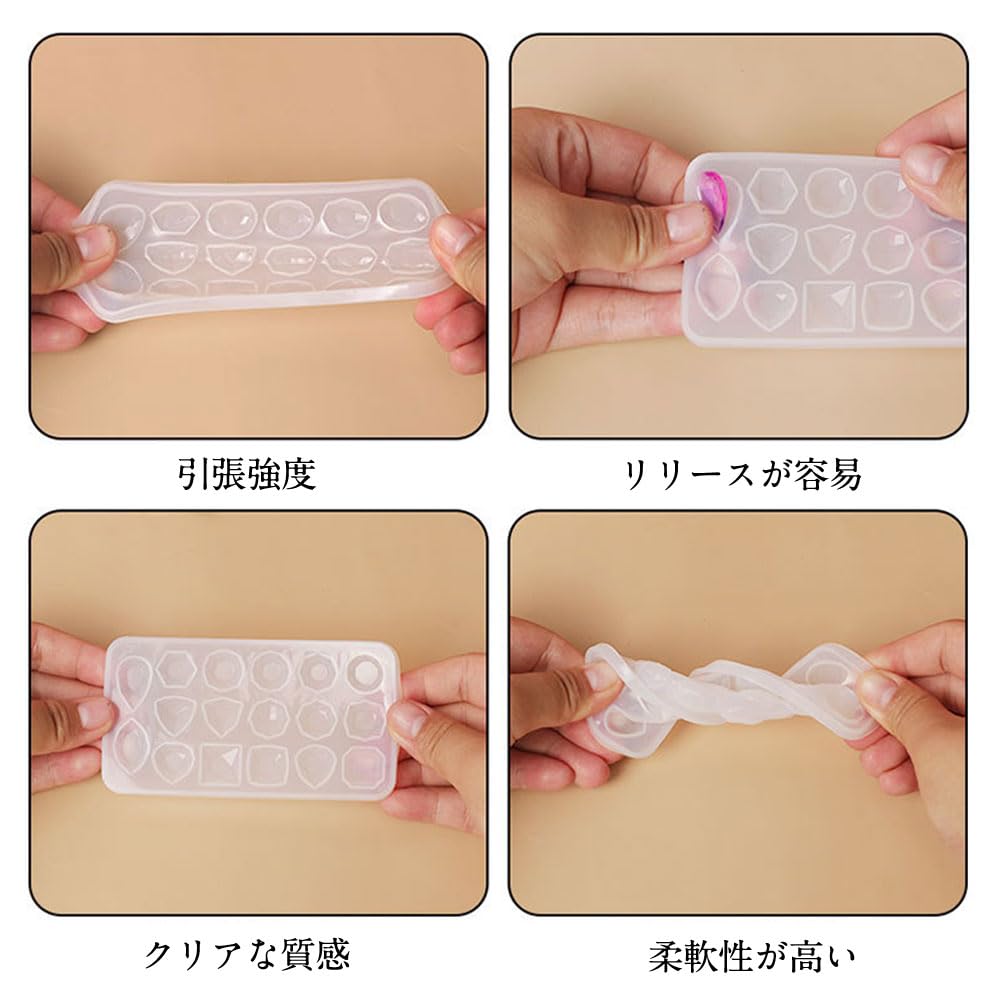 【素材】柔らかく、しっかりしたシリコーン素材で、繰り返し使えます。弾力のあるシリコンモールドなので、レジンや樹脂が固まった後、スムーズに型から外すことができます。