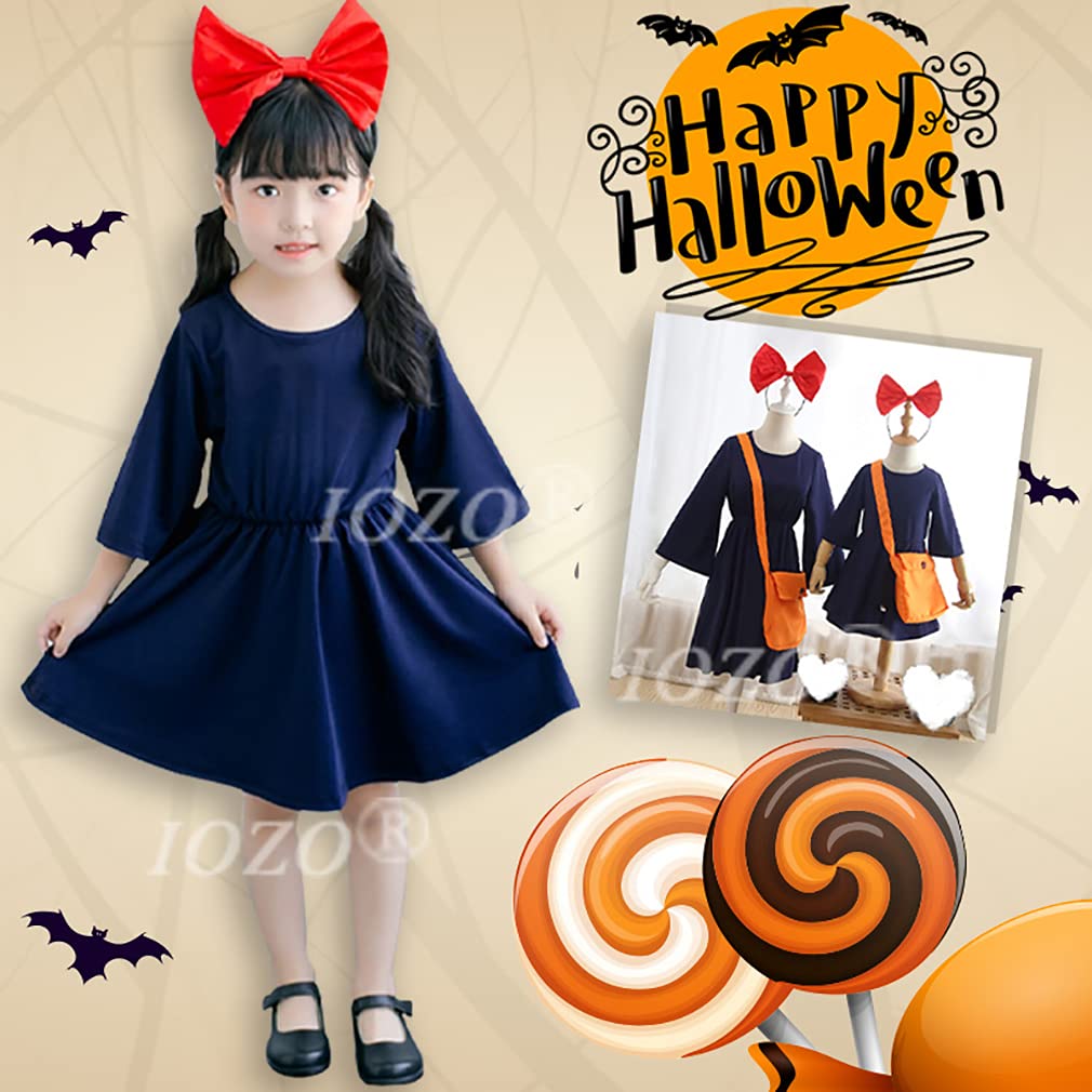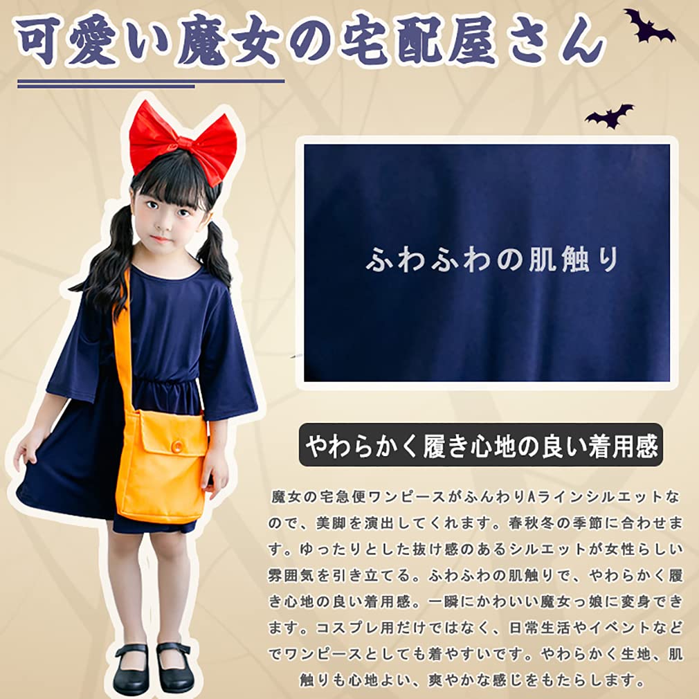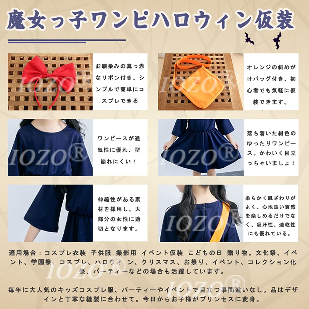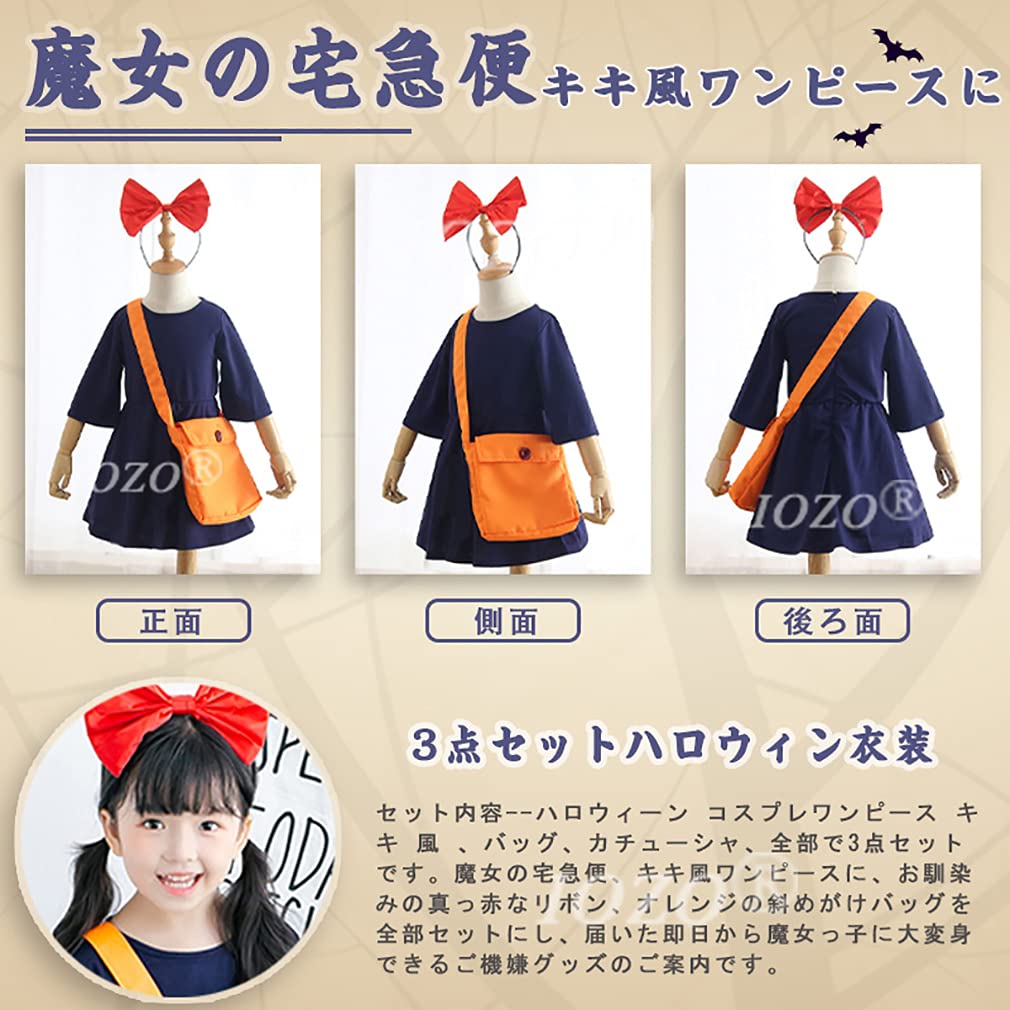 [IOZO] キッズ 女の子 コスプレ 衣装 こども 魔女っ子ワンピ ハロウィン 仮装 子供 女の子 コスチューム 魔女っ子 キキ風 コスプレ 魔女の宅急便 レディース 魔女 コスプレ カチューシャ付き 3点セット ハロウィン イベント 文化祭