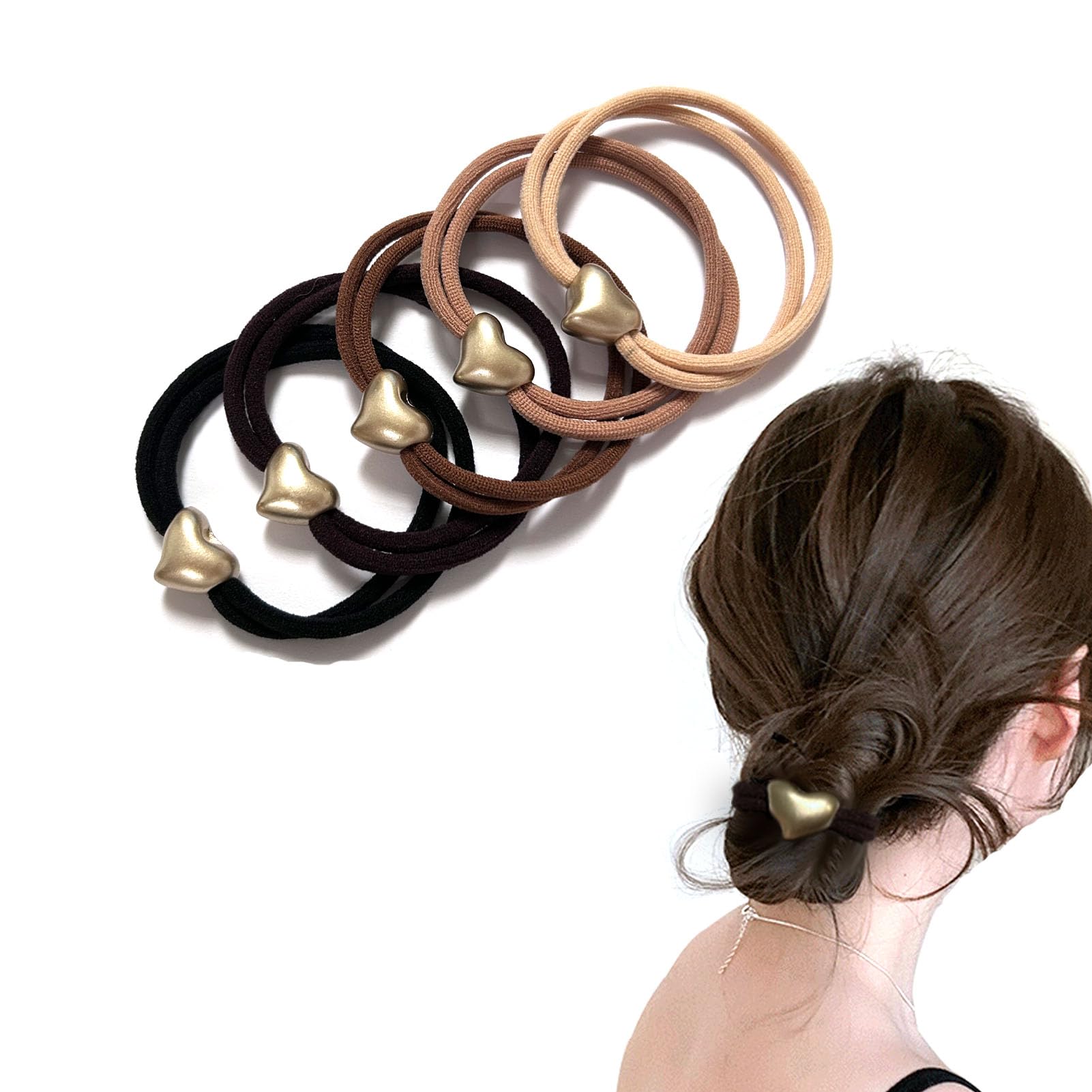 Fuyunohi ヘアゴム 黒 髪ゴム 跡がつかない ヘアゴム おしゃれ 跡がつかないヘアゴム ハート ヘアゴム かわいい 髪留め ゴム 韓国風 ヘアアクセサリー 飾りつきヘアゴム 高弾性 5本セット