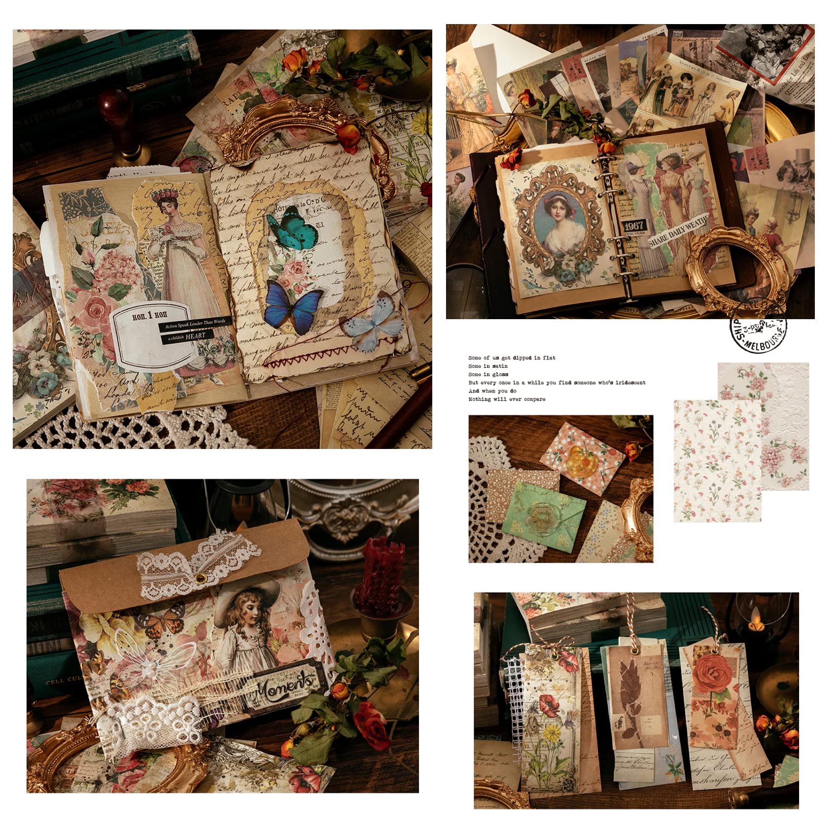 コラージュ 素材 デザインペーパー 詰め合わせ Arpaper ペーパー ヴィンテージ 背景紙 紙もの 素材紙 シール ノート レトロ ブック 女の子 かわいい 魔法 100枚 大容量 紙素材 コラージュ素材 アンティーク おしゃれ 猫 花(マジックノート)