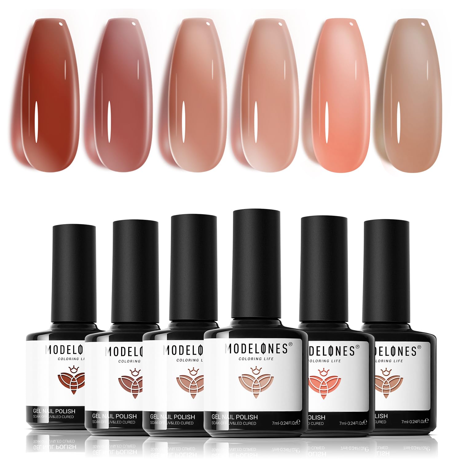 Modelones カラージェル 透き通る透明感 シアージェルネイル カラー ネイルカラー ネイルアート セルフネイル ピンクグリッター 初心者用 シアーネイル ニュアンスネイル UV・LED対応 6色入り