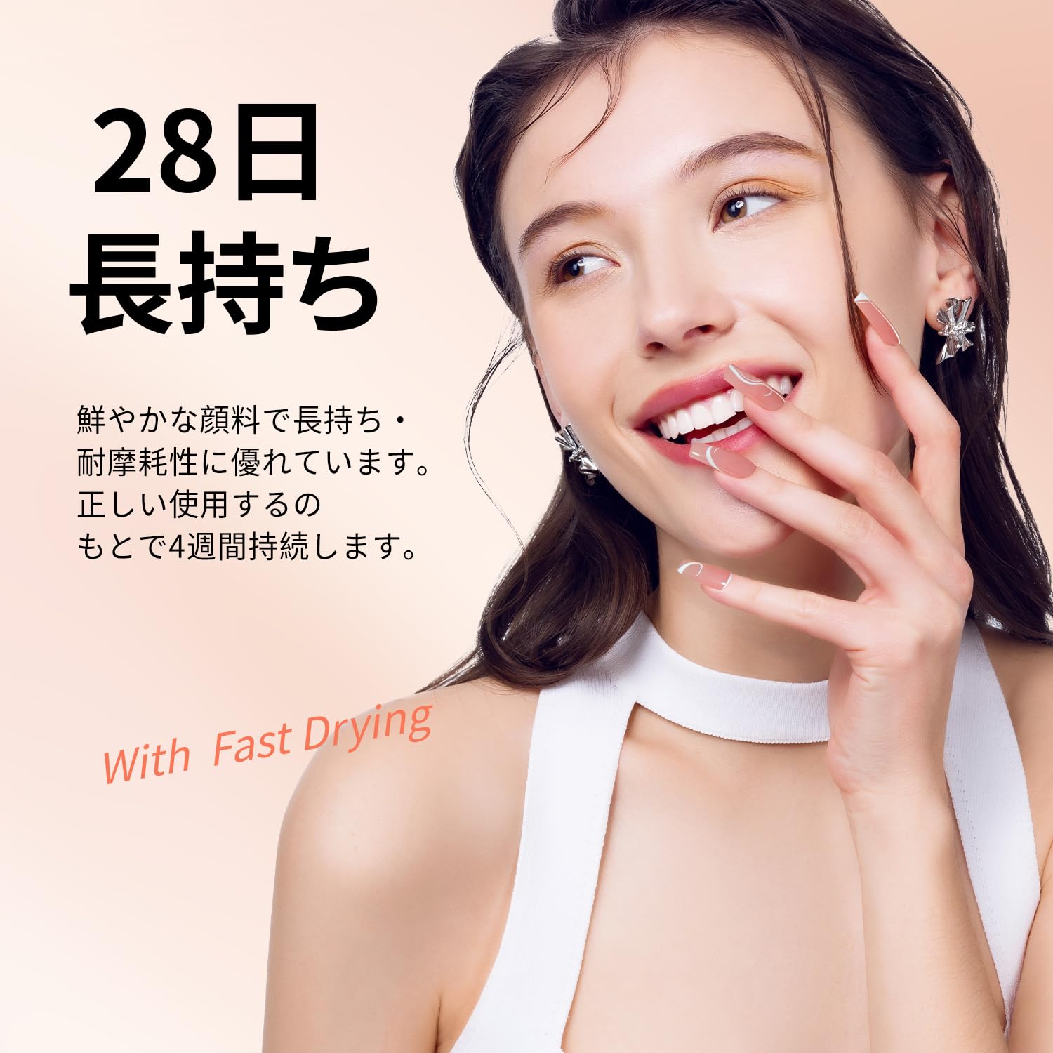 UV/LEDライト対応:UV/LEDライトで硬化必要です。 硬化時間目安:36W UVライト:約120秒 / 36W LEDライト:約60秒。ヒント:ご使用になるライトや塗布量によって多少の増減はあります。カラー見本と実際の色にはディスプレイなどにより異なって見える場合がございます。 予めご了承くださいませ