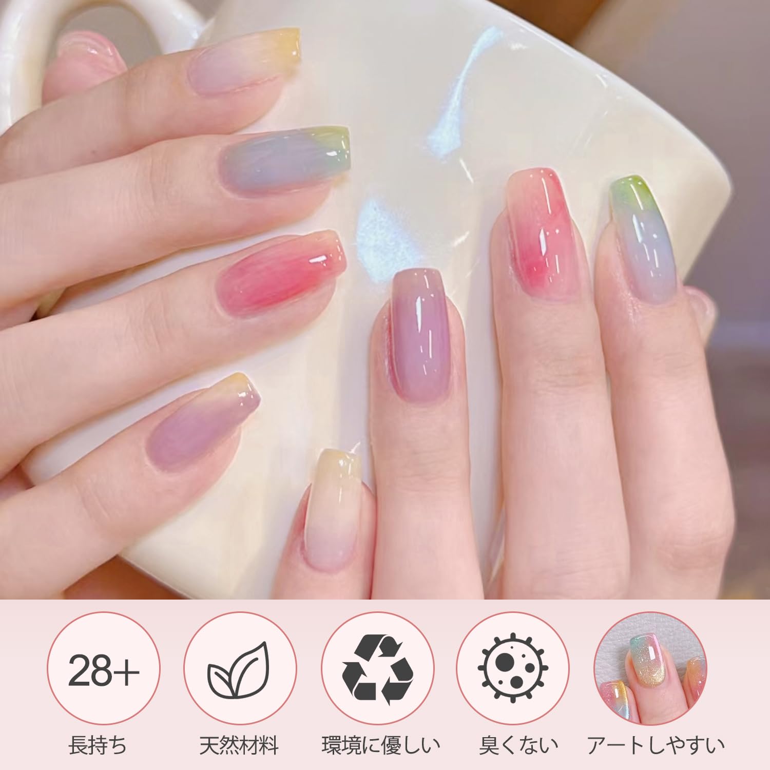 【天然樹脂と環境に優しい成分】無毒、低臭、動物実験なし、爪や肌に害を与えません。爪に害を及ぼす可能性のある刺激の強い成分や接着剤とはお別れしましょう。代わりに、当社の爪に優しいソリューションでより健康的な爪をお楽しみください。