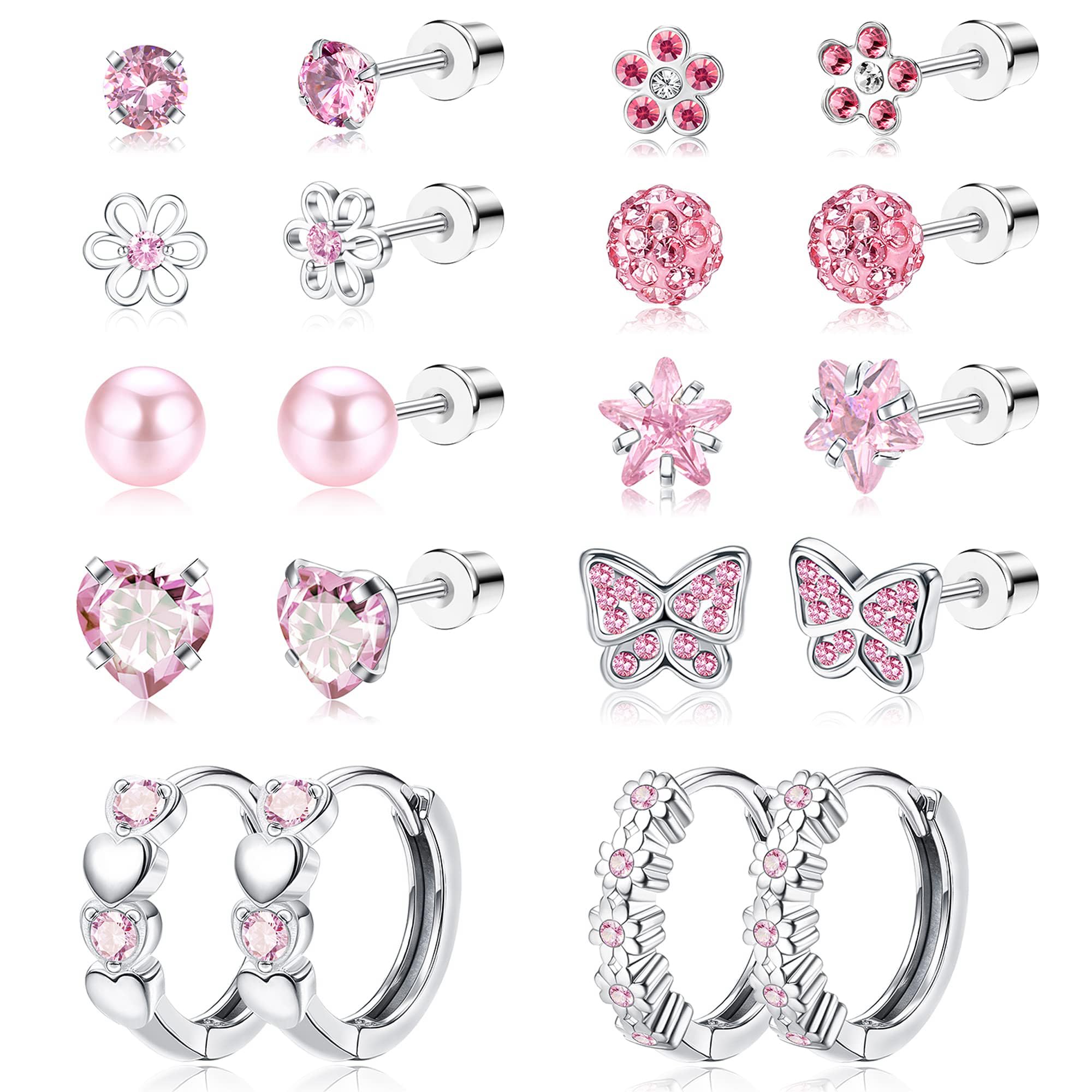 LOYALLOOK 10ペア ピアス レディース 人気 ピアス ネジ式 アレルギー対応 蝶 花 ハート 星 ボール ピアス リング ジルコン サージカルステンレス316L プラチナ おしゃれ 女性 可愛い ピンク カラー ピアス アクセサリー 誕生日 プレゼント クリスマス 記念日 バタフライ ヘリックスピアス