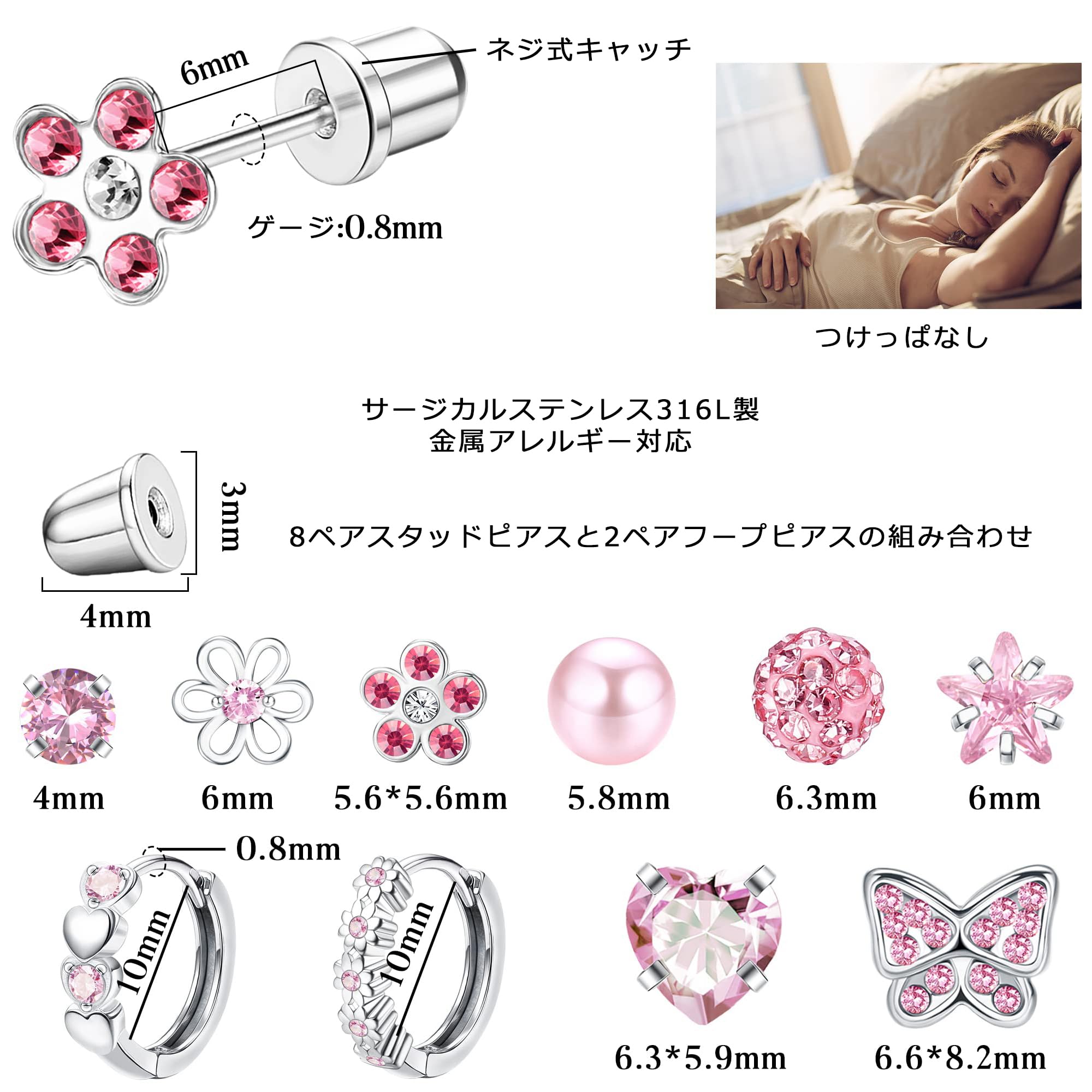 ??素材??かわいいピアスセットはステンレスの素材を採用しております。上質な色メッキで、金属アレルギーを起こしやすいニッケル、コバルト、スズなどの素材を一切使用しておりません。お客様がご安心して着用してください。