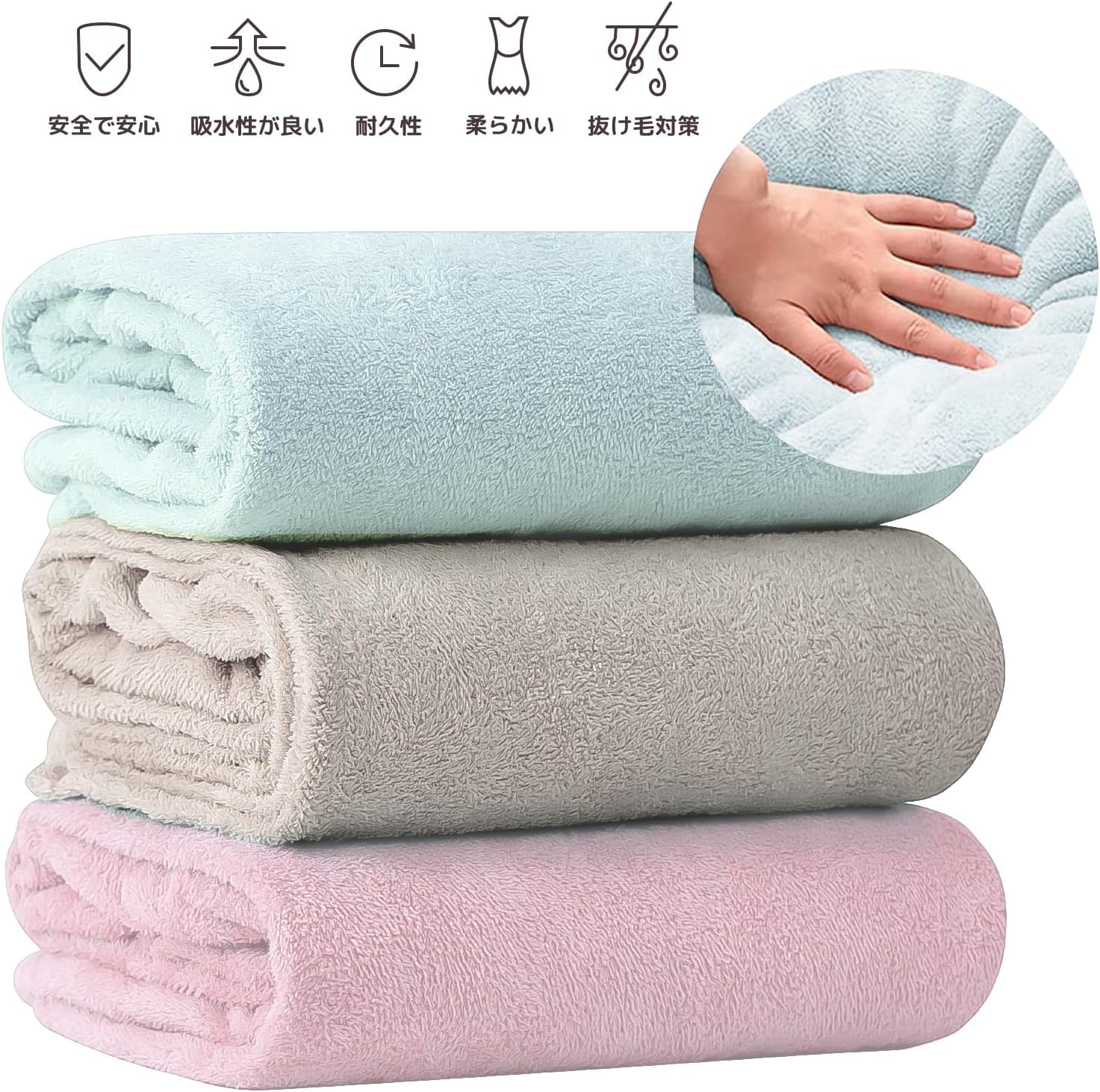 【メイン素材】ポリエステル 素材:肌にとてもやさしい。また、通気性と吸水性に優れているため、体や髪をすばやく乾かすことができます。サラっとした心地よさを持っております。