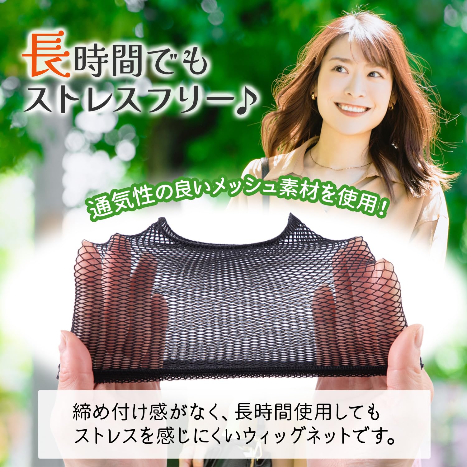 【素材】ウィッグネットが伸縮性の高い柔らかなメッシュ素材を使用しているので頭によくフィットします。