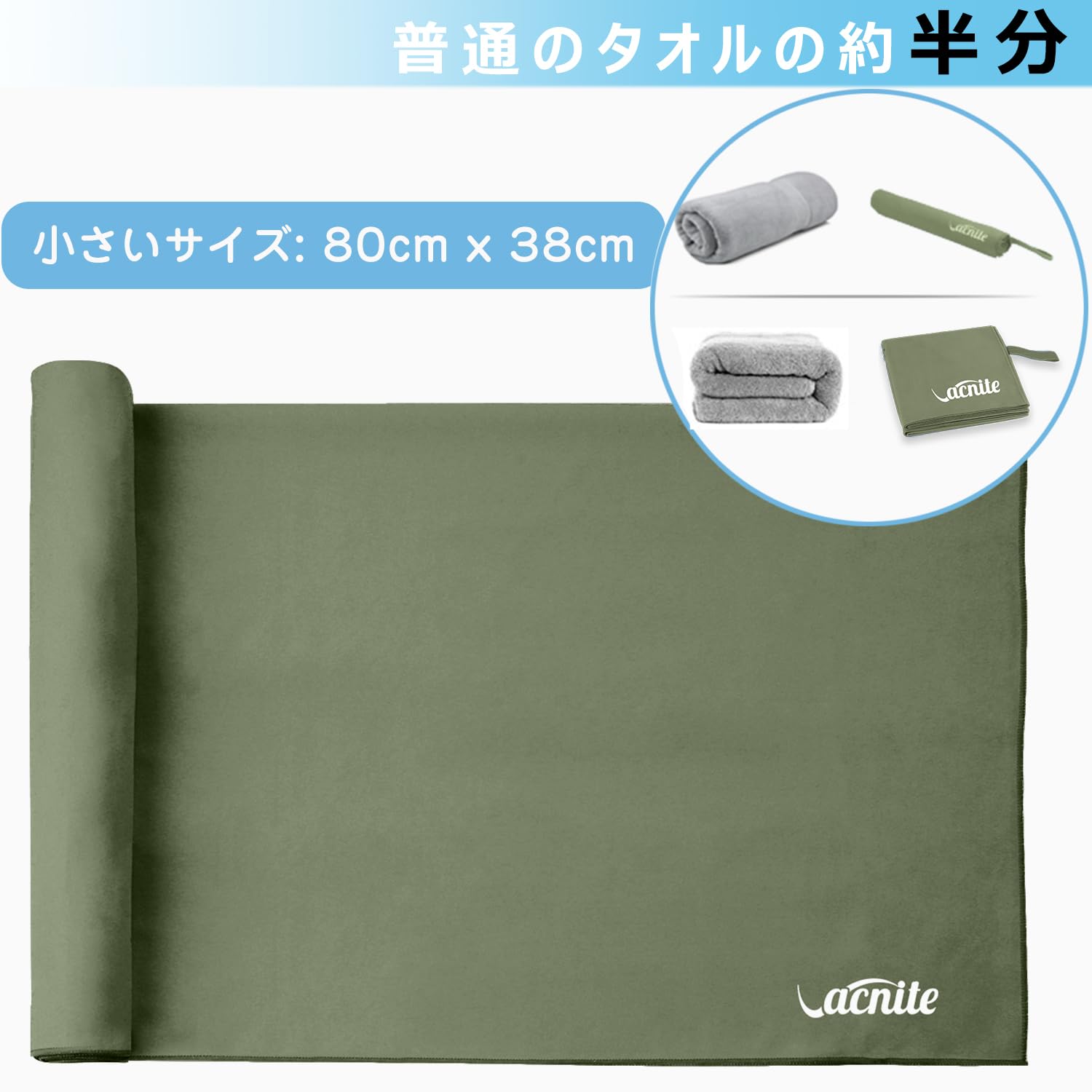 VACNITE 速乾タオル 超吸水 柔らかい 色褪せない 防臭 高い耐久性 軽量 収納袋付き 湿気 梅雨対策 旅行タオル バスタオル 水泳/スポーツ/旅行/家庭用 (アーミーグリーン, 80*38cm)